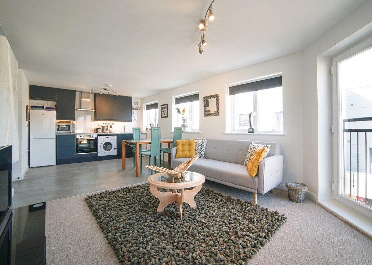 Welcome to our modern 2-bedroom serviced apartment near Oxford - a bright, comfortable base for work or exploring Oxfordshire. 🏠 Sleeps up to 6 with flexible beds and a sofa bed 🚗 Free on-site parking and easy access to Oxford city centre 🛋️ Open-plan living - dining - kitchen with Smart TV and WiFi 🧺 Ideal for longer stays with washer, dryer and full kitchen 🗝️ Easy self check-in via secure lockbox