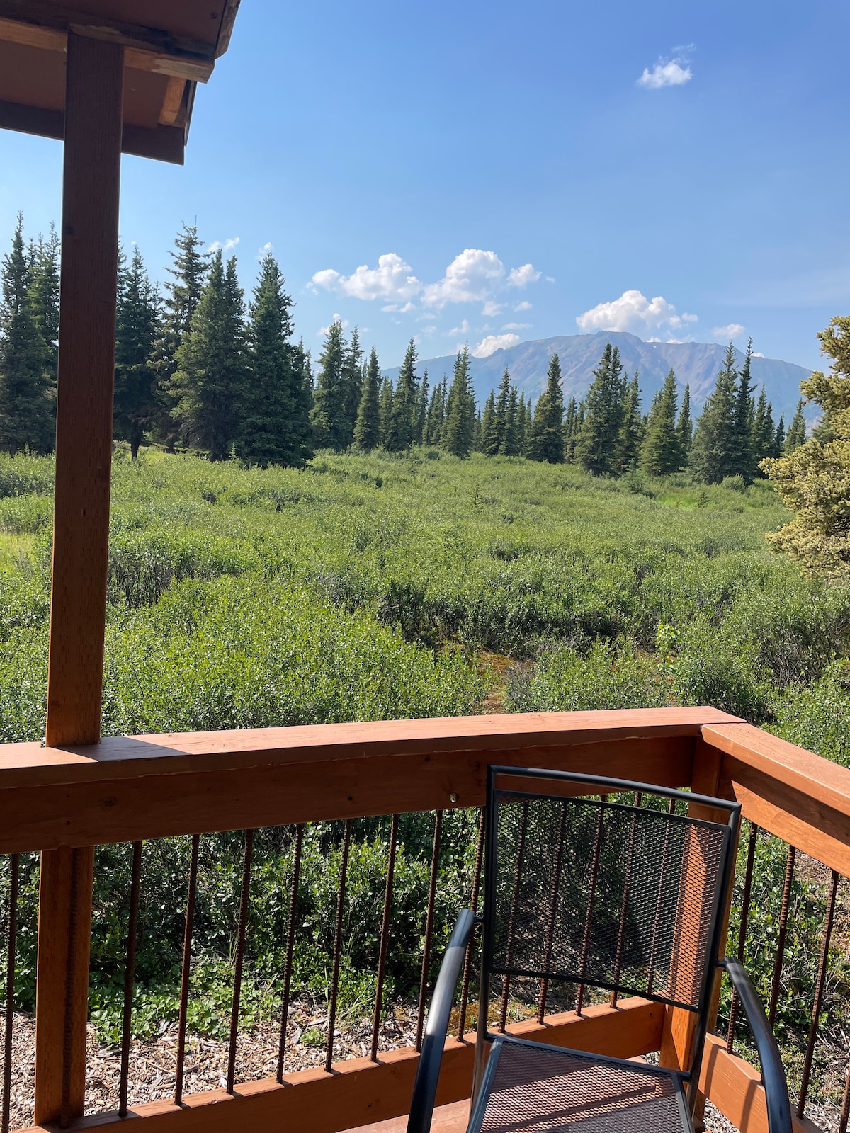 Dieses Blockhaus ist seit 15 Jahren die Familiengästekabine der Eigentümer. Jetzt, mit den jüngsten Verbesserungen, ist sie bereit, Teil deines Alaska-Erlebnisses zu sein. Du kannst die Region um den Denali-Nationalpark erkunden und hierher zurückkehren, um Komfort und Privatsphäre zu genießen. Große Fenster blicken in den alten borealen Wald und auf einen 6000' hohen, unbenannten Gipfel in der Alaska Range, den wir Nation Peak nennen.