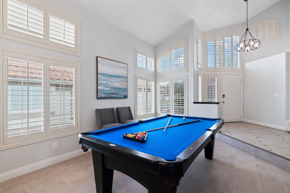 Willkommen in deinem Refugium in Las Vegas! Nur 12 Meilen vom Strip entfernt, bietet dieses Haus alles, was du für deinen modernen Urlaub benötigst. Egal, ob du Abenteuer auf dem Strip suchst, auf schönen, grünen Plätzen Golf spielen oder den majestätischen Red Rock Canyon erleben möchtest, dies ist der perfekte Ort für dich. Unser Zuhause kann dein Luxus-Hafen außerhalb deines Zuhauses sein. Verbringe Zeit mit deinen Lieben, genieße eine Mahlzeit, entspanne dich im Whirlpool, spiele Billard oder Golf und mach dich bereit für dein nächstes Abenteuer!
