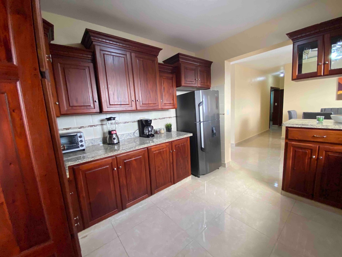 Willkommen in deinem Zuhause in Salcedo! Diese charmante Wohnung im 4. Stock verfügt über drei geräumige Zimmer, perfekt für Familien oder Gruppen. Genießen Sie zwei moderne Badezimmer und eine voll ausgestattete Küche. Entspann dich auf dem Balkon mit Aussicht Das Wohnzimmer und das Esszimmer sind komfortable Räume, die man sich teilen kann. Wir bieten Highspeed-Internet, Warmwasser und einen Wechselrichter. Die Wäscherei verfügt über eine Waschmaschine und einen Trockner. Außerdem haben Sie Zugang zu einem Spielplatz und einem Basketballplatz. Diese Wohnung ist ideal für einen unvergesslichen Urlaub.