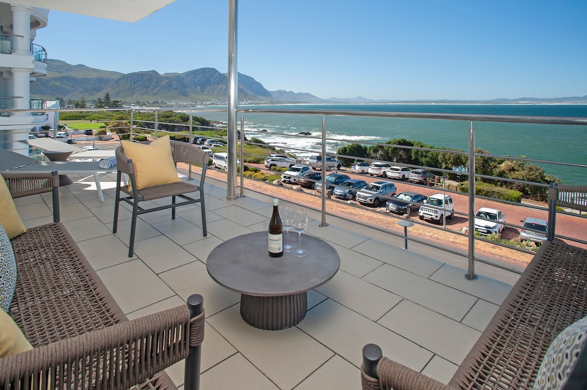 This apartment is surely one of it's kind. Spectacular views, equipped with all the amenities and appliances that you could wish for to ensure a superb stay. Whales, galleries,restaurants & cliff paths on your doorstep. The lovely outdoor dining area with barbeque & pool is the perfect entertainment area to enjoy after exploring all Hermanus has to offer. The lounge, dining & kitchen all open plan and spacious. The sea-facing King Size bedroom is a dream. Excellent gym facilities in the complex.