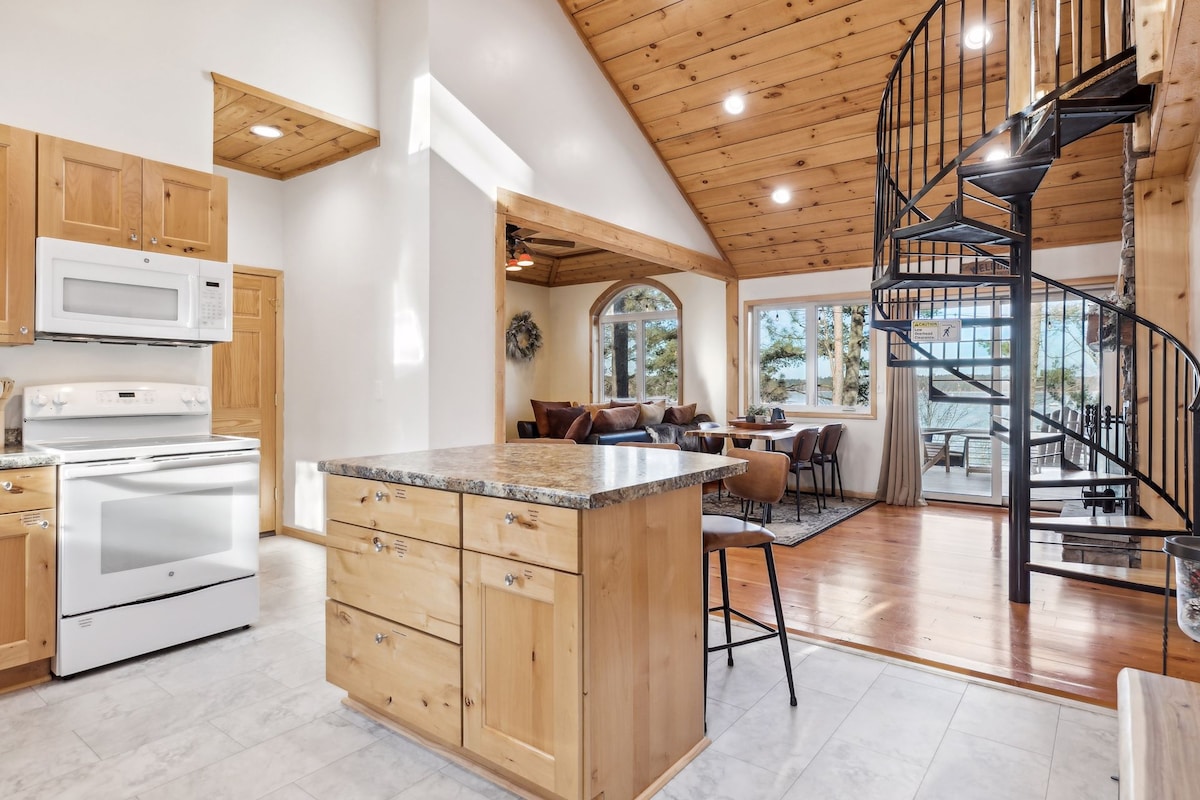 Hoch unter den Bäumen gelegen, mit einer atemberaubenden Aussicht auf den versteckten See und Wildblumenwiesen, ist der MetalLark Tower der perfekte Rückzugsort. Diese zweistöckige, 800 Quadratfuß große Hütte verfügt über ein Kingsize-Bett, ein verstecktes Etagenbett und ein Badezimmer. Wir haben den Wohnbereich hoch oben im zweiten Stock untergebracht, um unseren Gästen einen Blick aus der Vogelperspektive zu bieten. Das raumhohe Glas bringt die Natur ins Innere, und jede Jahreszeit bietet ihre eigene einzigartige Perspektive. Der Aufenthalt im MetalLark Tower ist wirklich ein einzigartiges Erlebnis.
