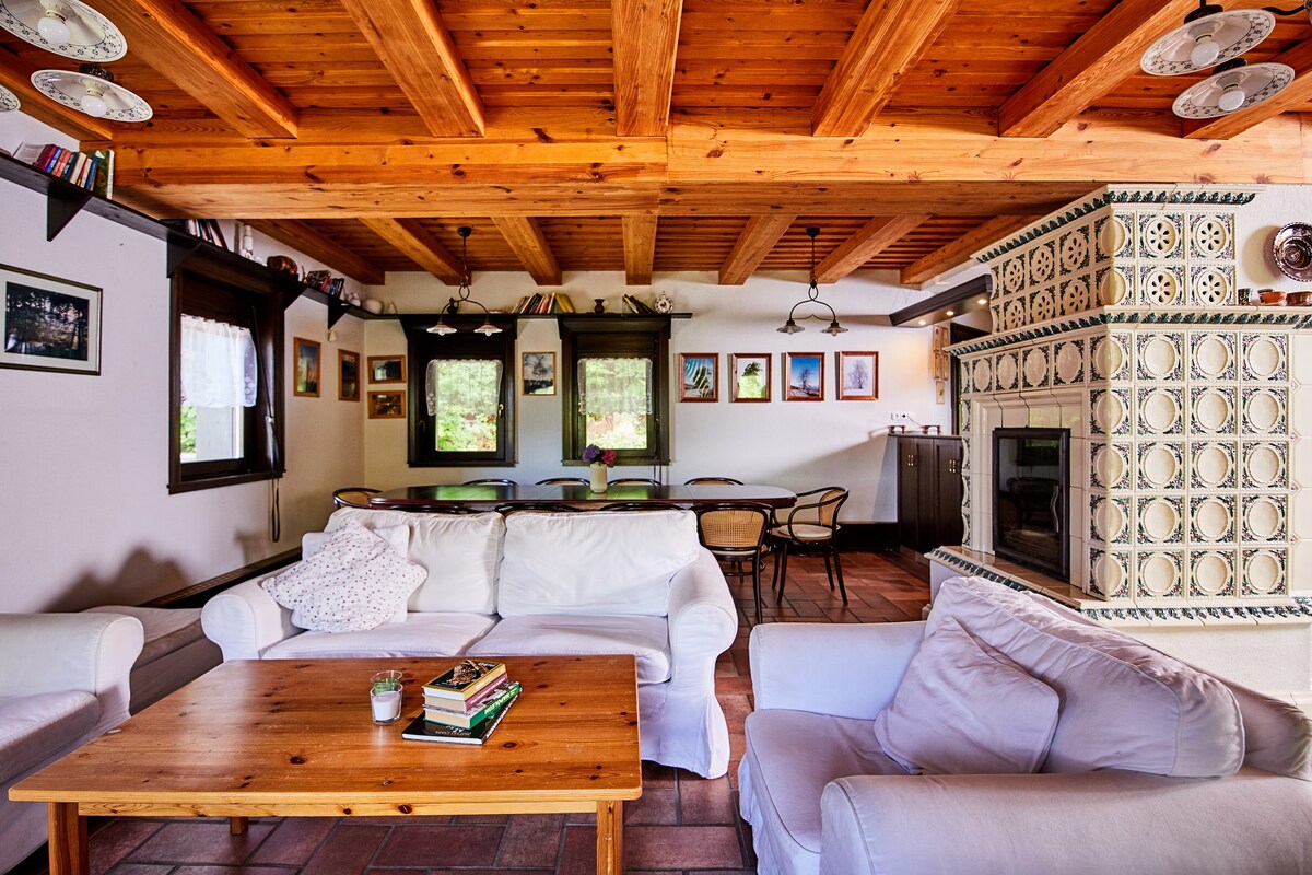 Villa Szalamandra bietet eine fantastische Erholungszeit für eine große Familie oder eine tolle Gesellschaft mit Freunden. Die Villa (250m ²) und der Naturgarten (5000m ²) direkt im Wald mit dem niedlichen kleinen Bach im Garten bieten vielfältige Möglichkeiten. Das Herz der Villa Szalamandra ist der riesige gemeinsame Ort mit amerikanischen wie offene Küche, der herrliche Kamin und der riesige Esstisch, die das Zentrum des Hausspaßes sind. Ohh..und die fantastische Aussicht auf das Dorf und die Tatra...
