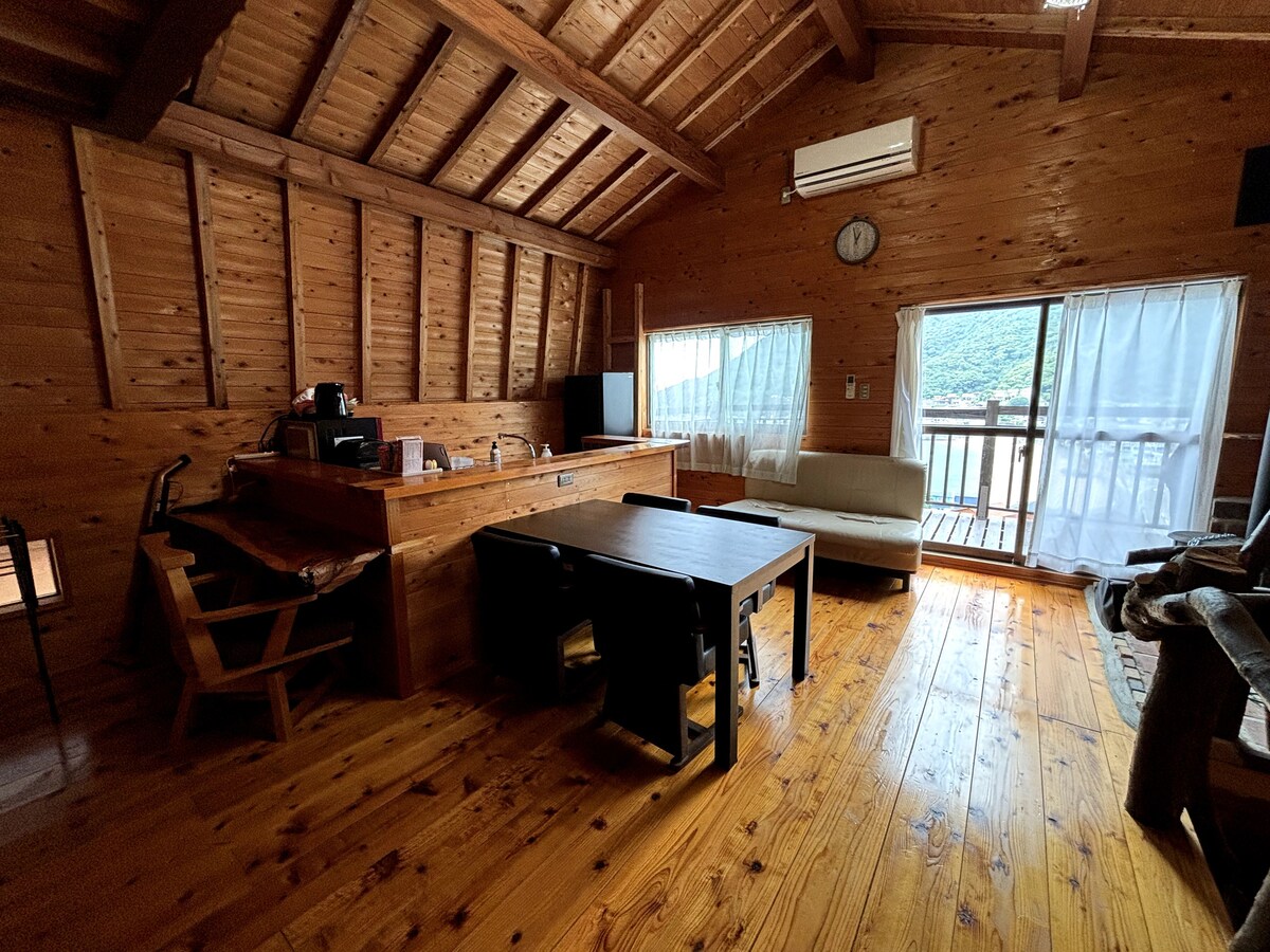 ログハウス波音:ペットと泊まれるオーシャンビューの貸別荘、海岸美を誇る白崎海洋公園まで車で5分!
