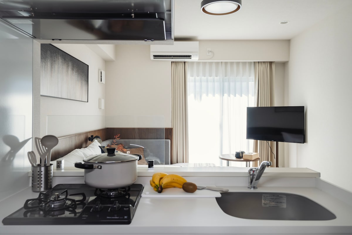 Ruoie Creek House "Zimmer 201", 2 Minuten vom Kuromon-Markt in Osaka, 3 Minuten von der U-Bahn-Station Nihonbashi. 43 m² Ein-Zimmer-Wohnung