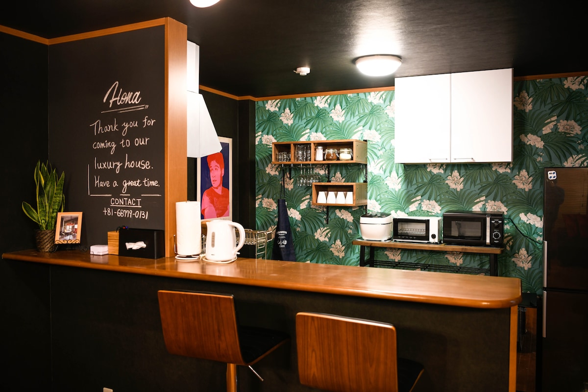 Ein 100 Jahre altes traditionelles Stadthaus in der Nähe von Abeno Harukas. Ein komplett privates, renoviertes Haus, das Geschichte und Komfort verbindet. Einst die Heimat eines Noh-Lehrers, überstand es den Zweiten Weltkrieg und bewahrt noch heute die ursprünglichen Säulen und Hina-Puppen. ★ Kleiner Zen-Garten mit beruhigenden Wassergeräuschen ★ ReFa Haartrockner und Duschkopf ★ Selbst-Check-in mit elektronischem Türschloss ■ Zugang • Innerhalb von 5 Gehminuten zu den Bahnhöfen JR und U-Bahn Tennoji • Direkte Zugverbindungen nach Namba und Umeda; zum internationalen Flughafen Kansai in 35 Minuten
