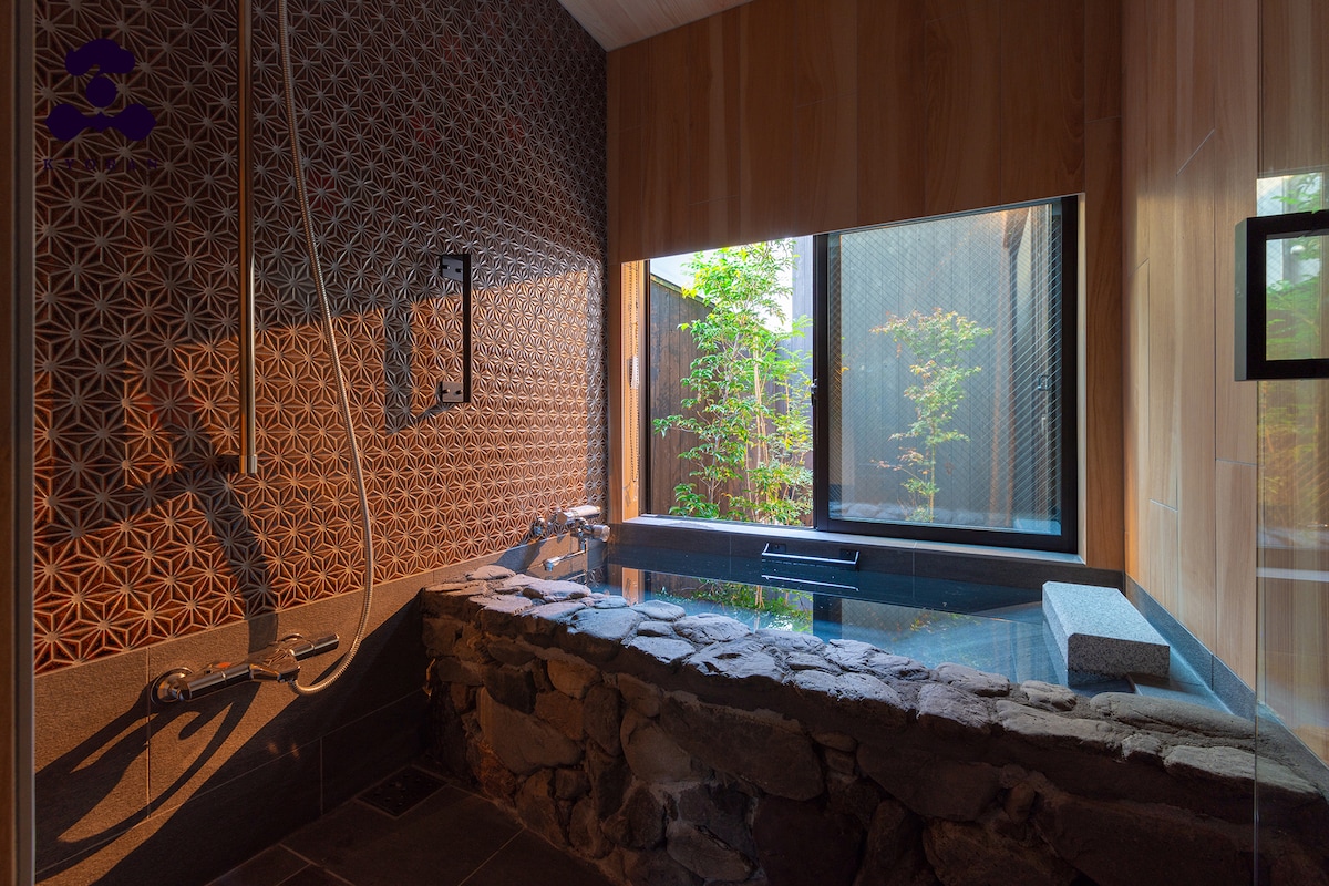 Maximal 6 Personen, Luxuriöses Stadthaus „KYOYA“ mit dem Flair von Kyoto, Higashiyama-ku, Gion und Kiyomizu-Dera zu Fuß erreichbar, alle Zimmer sind mit Klimaanlage und Heizung ausgestattet, Zypressenbad