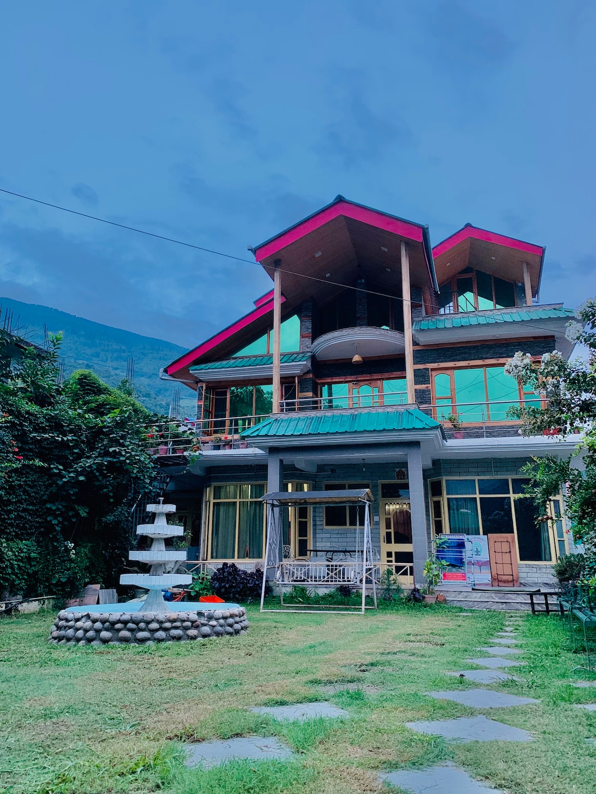 Dieser Aufenthalt befindet sich mit dem atemberaubendsten Blick auf Manali. Weg vom Hadimba-Tempel und dem Naturspaziergang. 3 km von der Mall Road entfernt. 2 km zu Fuß zur alten Manali-Brücke. Unser Anwesen besteht aus 2 Cottages, in denen wir diese Etagen von 2-3 Zimmern mit jeweils privaten Balkonen und schönen Sitzgelegenheiten im Freien haben. Dieses befindet sich im ersten Stock. Wir haben einen hauseigenen Koch, bei dem du alles auf Bestellung erhalten oder aus unserer hauseigenen Speisekarte wählen kannst.