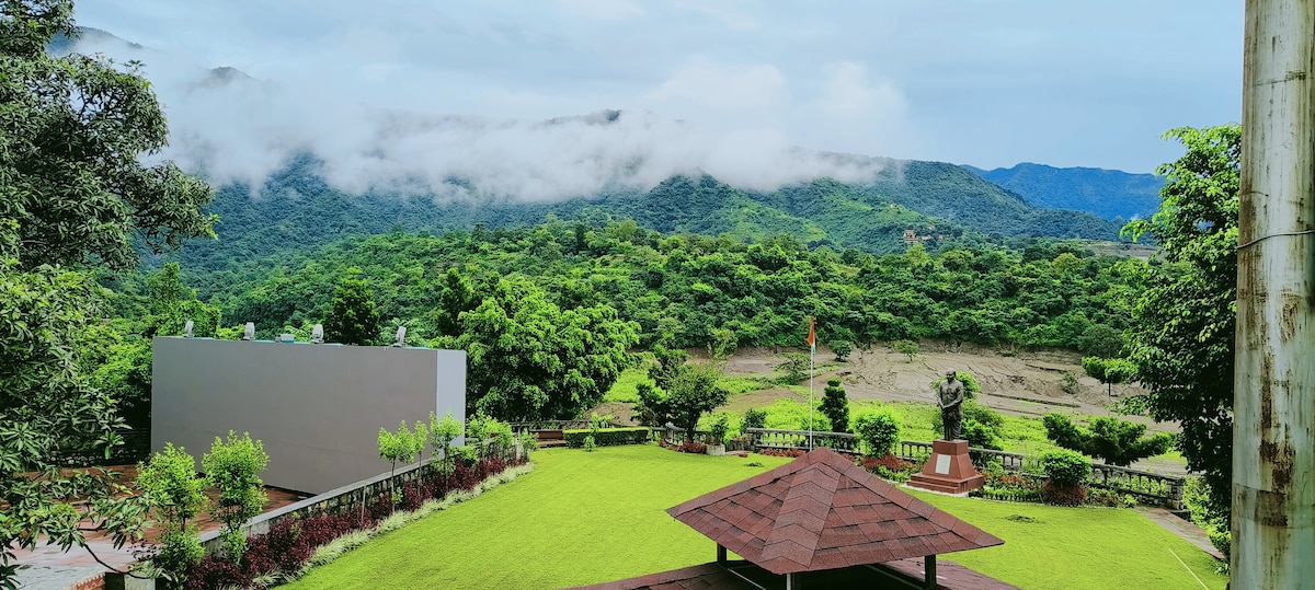 Vergiss deine Sorgen in diesem geräumigen und ruhigen Raum. Unsere Gästehaus hat einen Blick auf einen großen schönen, üppigen grünen Garten. Die Terrasse bietet einen 360° -Blick auf die Berge. Du kannst den Abend in deiner eigenen Terrasse genießen und den Grill genießen. Das Gästehaus ist geräumig mit 1 Designer-Schlafzimmer, angeschlossenem Waschraum, einer komplett ausgestatteten Küche und einer eigenen persönlichen Terrasse, was es zu einem perfekten zweiten Zuhause macht. - Mussoorie - 18 km - Räuberhöhle, Sahastradhara - 20 Min. - Kostenloses WLAN, Netflix - Berühmte Speisen in der Nähe