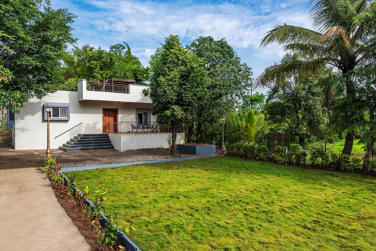 Entfliehe in diese 2BHK-Villa mit privatem Pool in der Nähe von Mulshi, die einen privaten Außenpool und ruhige Außenbereiche bietet. Ideal für 4-8 Gäste, perfekt für Familien, Freunde oder Kollegen, die einen ruhigen Rückzugsort suchen. Genieße moderne Ausstattung, eine sichere und private Umgebung und eine erstklassige Lage – gut angebunden und doch inmitten der Natur. Egal, ob Sie sich am Pool entspannen oder in stilvollen Innenräumen abschalten, diese Villa bietet den ultimativen Urlaub nur eine kurze Autofahrt von Pune entfernt. Wir sind auch ein tierfreundliches Zuhause.