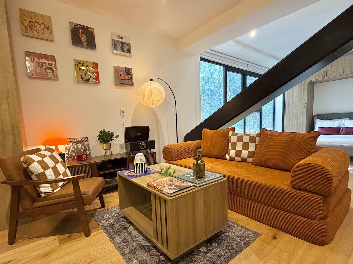 Neues und geräumiges zweistöckiges Loft in einem preisgekrönten renovierten Gebäude aus den 1940er Jahren. Sicherheit rund um die Uhr, persönlicher digitaler Code für den Zugang zur Wohnung, WLAN, voll ausgestattete Küche, Smart-TV mit Netflix/Mubi und ein gemeinsamer Waschraum im Gebäude. Das Loft verfügt über eine Terrasse im ersten Stock und eine riesige Terrasse voller Pflanzen im zweiten Stock neben dem Schlafzimmer. Es ist in der Regel sehr ruhig, aber es könnte tagsüber ein wenig Lärm geben, wenn in einer anderen Wohnung renoviert wird.