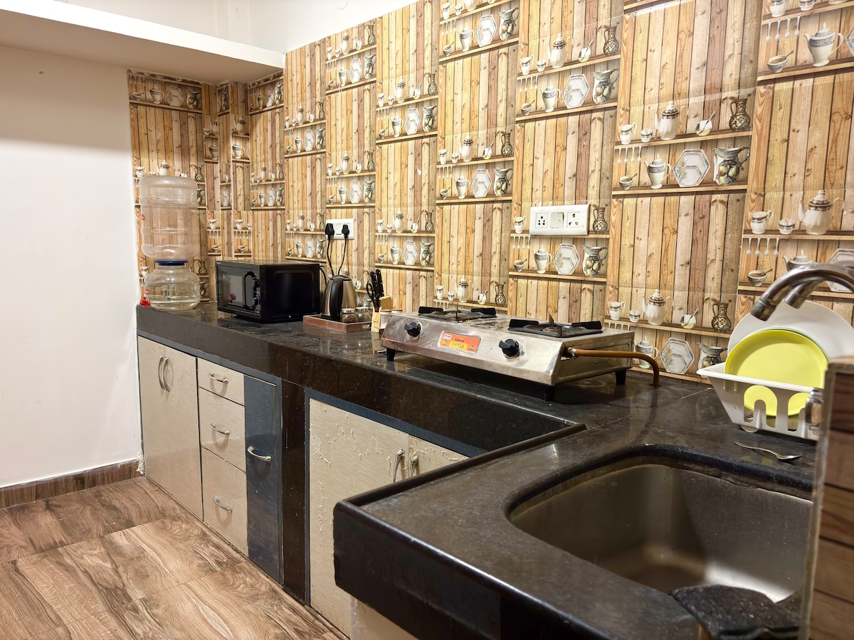 Moderner Komfort im Herzen von Hyderabad- In dieser voll ausgestatteten Luxuswohnung wohnst du nur wenige Schritte von den wichtigsten Sehenswürdigkeiten, Restaurants und kulturellen Orten der Stadt entfernt. Der Raum verfügt über ein gemütliches Schlafzimmer, einen Medienraum mit 75-Zoll-Fernseher, ein modulares Sofa, eine PS4 und eine gut ausgestattete Küchenzeile, WLAN und ein bequemes Bett, um sich nach einem Tag voller Entdeckungen zu erholen. Perfekt für Alleinreisende, Familien, Paare, die Bequemlichkeit und Komfort im Stadtzentrum suchen. Buche deinen Aufenthalt und erlebe Hyderabad wie ein Einheimischer!