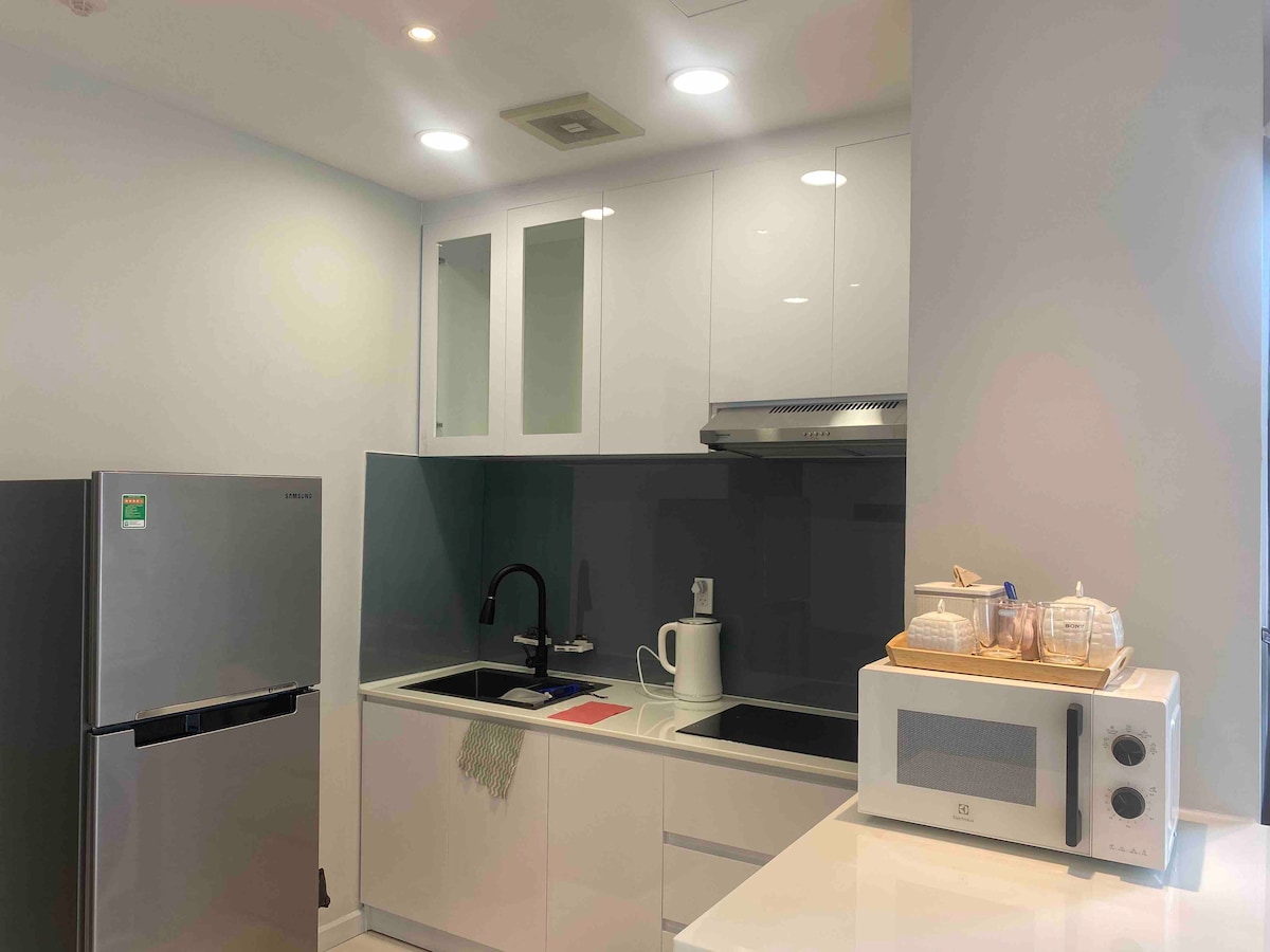 +Wohnung im Landmark2-Gebäude, neben Landmark81. +Dies ist Officetel (Office+Hotel) Apartment allow to do Airbnb. +Das Schlafzimmer verfügt über eine luxuriöse Memory-Foam-Matratze, Kingsize-1 m 8 x 2 m, perfekt und komfortabel, gut für Rückenschmerzen. +Es gibt Waschmaschine & Trockner +Hygiene, Sauberkeit haben oberste Priorität. Bettwäsche und Handtücher werden bei der Ankunft immer erneuert +Es gibt einen kostenlosen Reinigungsservice für Langzeitaufenthalte +Pool und Fitnessraum benötigen Reisepass- oder Ausweisregister und für eine Buchung ab 5 Tagen oder mehr