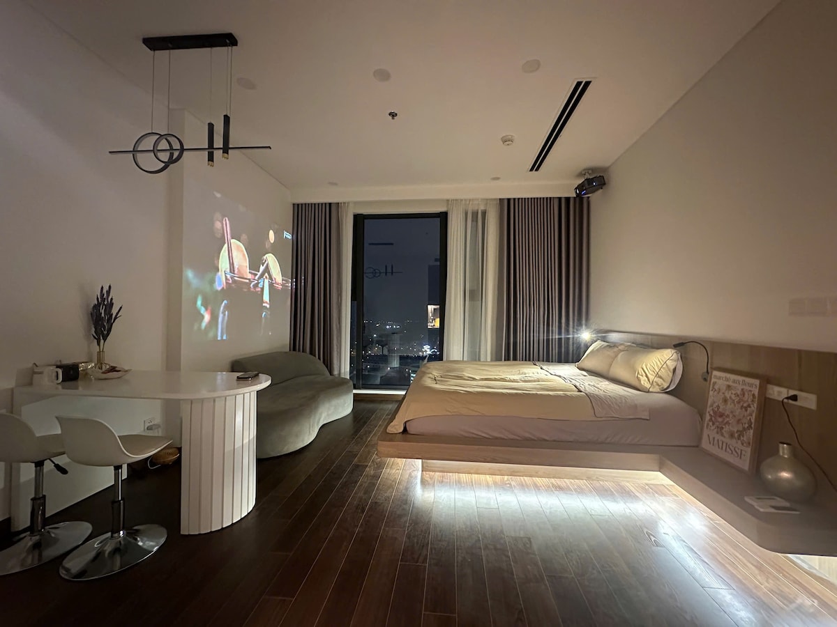 Căn hộ được thiết kế sang trọng, hiện đại với không gian mở ,tầm nhìn thơ mộng cả về hồ và thành phố lung linh.. Phòng bếp đầy đủ tiện nghi với các dụng cụ nấu ăn cơ bản, lò nướng tiện lợi, sẵn sàng cho những bữa ăn ngon miệng. Bạn có thể thư giãn với TV màn hình lớn có sẵn Netflix, hoặc thưởng thức ly rượu vang trong không gian ấm cúng của riêng mình. Đặc biệt, bạn còn được sử dụng miễn phí bể bơi và phòng gym hiện đại trong khuôn viên, giúp bạn luôn năng động và thư giãn trong suốt kỳ nghỉ.