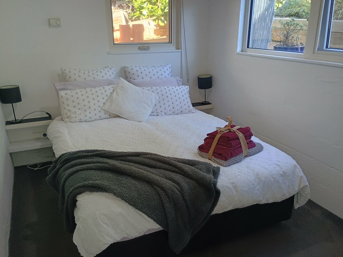 Schöner Anbau in ruhigem Garten, in der Nähe der schicken Restaurants und Cafés des trendigen North Hobart. Das geschmackvoll eingerichtete Doppelzimmer verfügt über viel natürliches Licht, ein Doppelbett, ein eigenes Bad und Frühstücksmöglichkeiten. Draußen befindet sich eine wunderschöne Terrasse und ein Garten mit bequemen Gartenmöbeln, Markisen zum Schutz vor Regen und Sonne, einem Gasgrill und einem gemeinsamen Hauswirtschaftsraum. Dies ist der perfekte Ort, um sich zu entspannen, während du die Stadt erkundest und die Freuden Tasmaniens genießt.