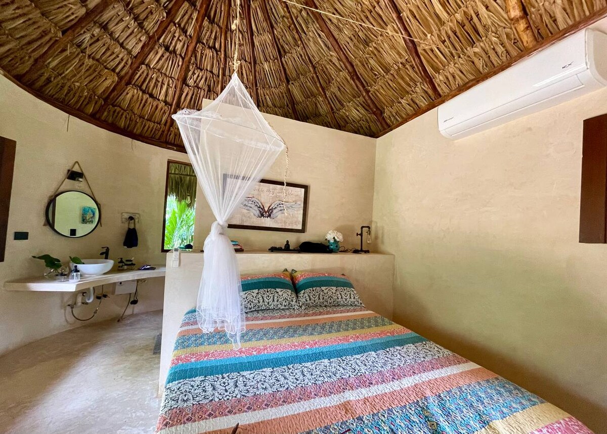 Genieße zwei unserer Hütten in einem familiären Umfeld, wo du die Erfahrung machen wirst, an einem Ort zu wohnen, der die Menschen mit sich selbst verbindet und die Natur bewundert. Wir haben alles für Familien und Freunde geplant; mit dem Veranstaltungsbereich, dem Grillplatz, dem Kinderspielplatz, dem Pool, dem Planschbecken, dem Fußballplatz, den Meditationswegen; wir haben alles, damit Ihre Gruppe eine tolle Zeit hat. In Richtung Cancún gelegen, in der Nähe der Gegend von Cenoten und Izamal.
