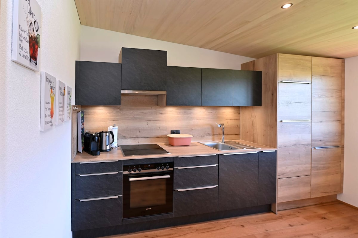 Schöne, helle, neue Galeriewohnung im Dorfzentrum von Langen. Frühstückscafe / Bäckerei im Gebäude nebenan. Kleiner Supermarkt im Erdgeschoss. Die Dorfkneipe gegenüber. Sonnendurchflutet mit Blick in die Berge. Holzböden, eingerichtet mit stilvollen Möbeln. Eigener Tiefgaragenstellplatz vorhanden. E-Mobilität Ladestation am Tiefgaragenplatz für Typ 2 Stecker 11kW AC. Abschließbarer Fahrradkeller. Glasfaserinternetanschluss mit 250 Mbit