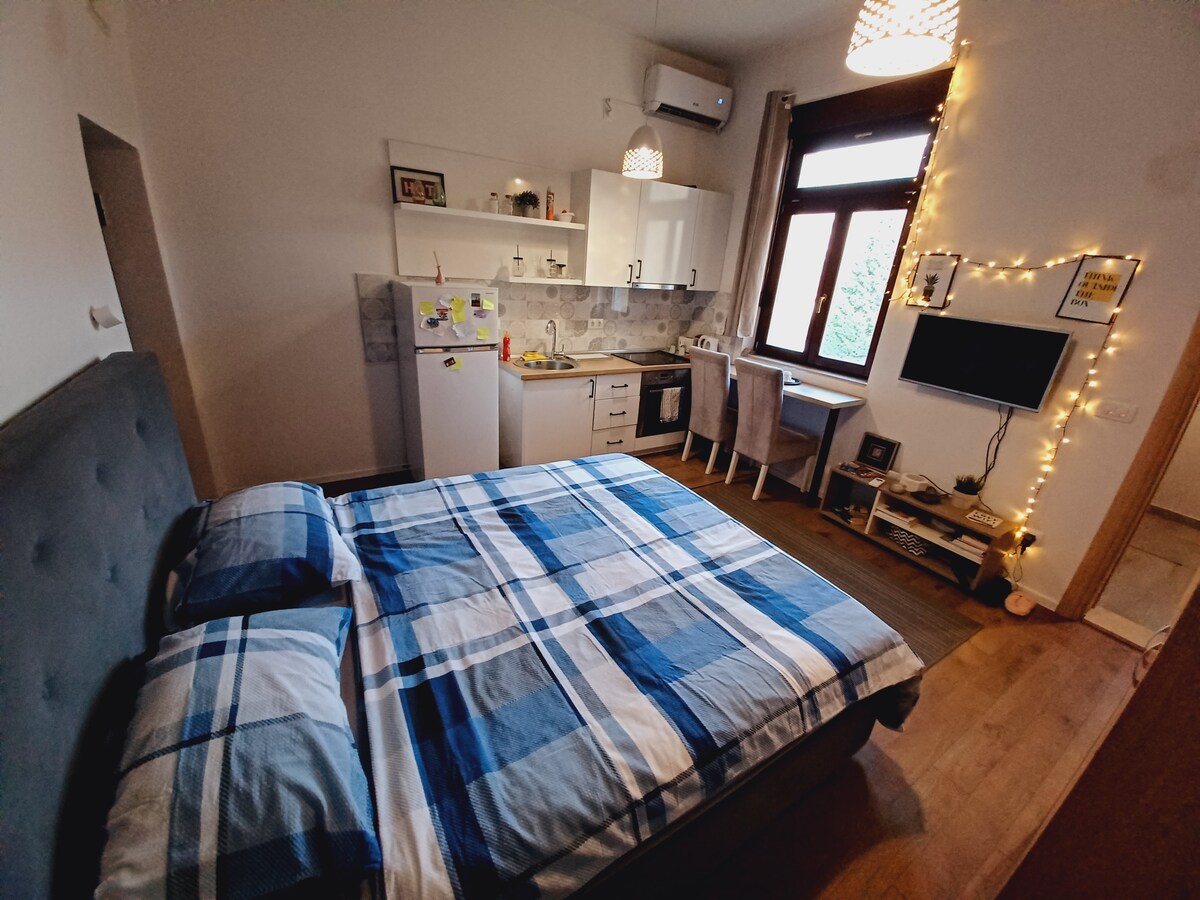 Miete pro Tag Studio-Apartment mit Dachterrasse – Apartment mit Aussicht Entspanne dich in einer komplett renovierten und ausgestatteten Studio-Wohnung und genieße einen einzigartigen Blick auf die Stadt. Im Stadtzentrum, mit hervorragend ausgestatteter Küche, Badezimmer und Terrasse, Smart-TV (einschließlich Netflix, HBO GO, Primevideo), kostenlose Parkplätze. Erlebe Mostar aus einer anderen Perspektive.