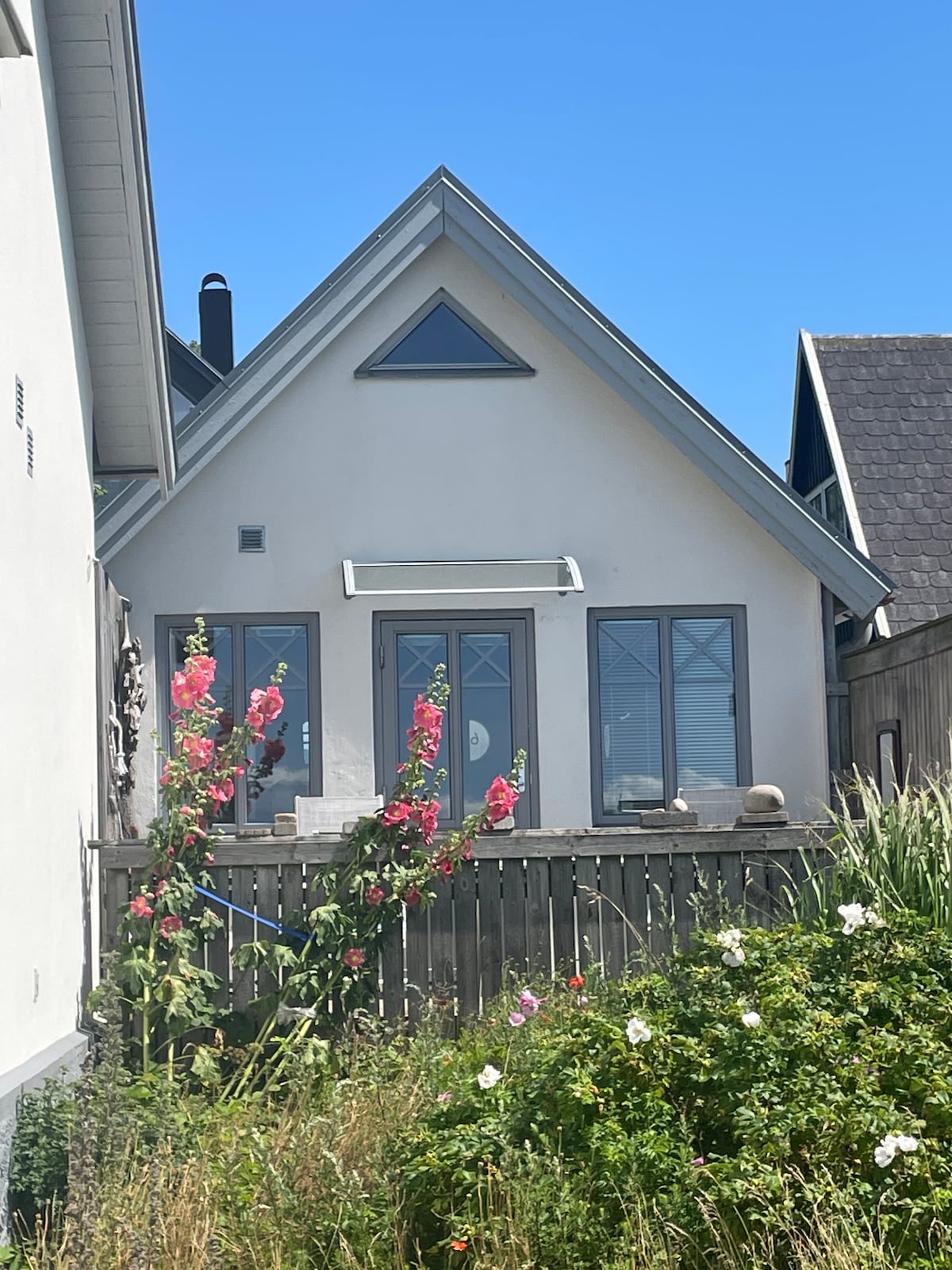 Wohnen Sie komfortabel in dieser schönen Unterkunft, die im Frühjahr 2023 fertiggestellt wurde. Von der Unterkunft aus können Sie magisch schöne Sonnenuntergänge sehen. Der Strand ist nur wenige Minuten entfernt und über einen kleinen Weg zu erreichen. Zwei größere Schlafzimmer mit Doppelbetten und ein kleineres mit 80er-Bett, das leicht zu einem 160er-Bett ausgezogen werden kann. Voll ausgestattete moderne Küche mit Licht und gemütlichem Essbereich. Die Unterkunft ist Teil eines Doppelhauses, aber sehr gut schallisoliert und mit separaten Terrassen, die eine ordentliche Privatsphäre schaffen.