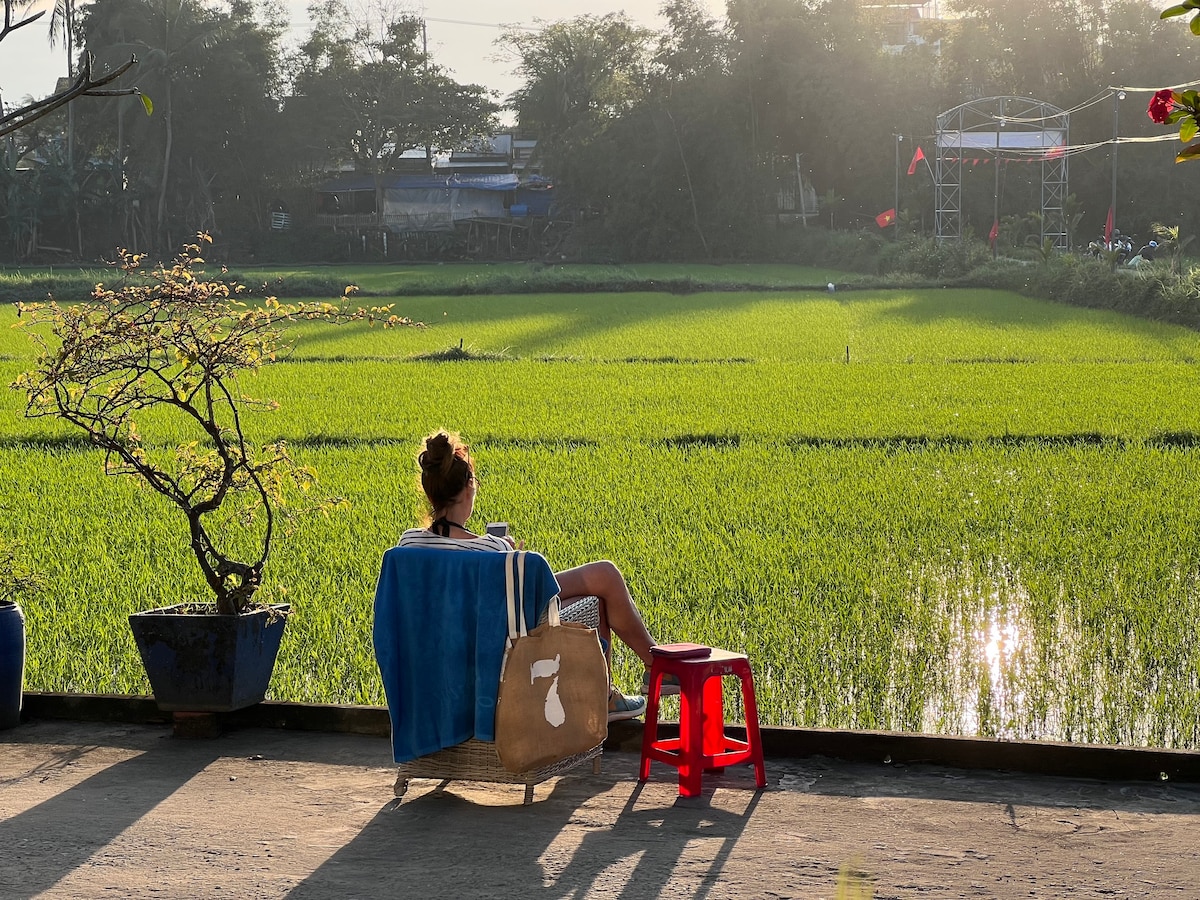 Neue Villa mit dem Luxus eines Hotels und der Gastfreundschaft einer einheimischen vietnamesischen Familie. - Privates Badezimmer - Balkon im Zimmer - Kühlschrank im Zimmer - Swimmingpool auf dem Dach - Ruhige Umgebung mit Blick auf die Reisfelder - Kostenloses Fahrrad - Frühstück mit speziellen lokalen Speisen; Tee oder Kaffee und Obst - 10 Minuten von der Altstadt und dem Strand entfernt - Täglich kostenloser Kaffee/Tee/Wasser - Vermietungen verfügbar - Touren verfügbar - Vinmart 100 Meter - Restaurants und Cafés 100 Meter - Lokale Wohngegend