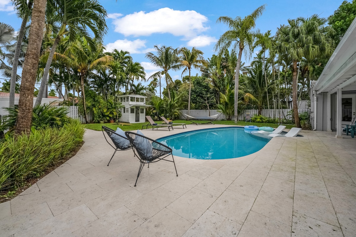 WATERFRONT HOME W/ HEATED POOL & FOUNTAIN, TIKI HUT W/BAR, KAYAKS & BIKES! DIRECT TO INTRACOASTAL W/LUXURY FINISHES & BEAUTIFULLY FURNISHED IN THE HEART OF POMPANO BEACH. THIS HOME INCLUDES 3 BEDROOMS & 2 BATHROOMS & A HEATED POOL! CLOSE TO BEACH, WATERSPORT ACTIVITIES, FINE DINING & UPSCALE SHOPPING. YOUR IDEAL FLORIDA BACKYARD GREAT TO GRILL & RELAX ON LOUNGE CHAIRS WHILE OVERLOOKING THE WATER. 2 KAYAKS INCLUDED!