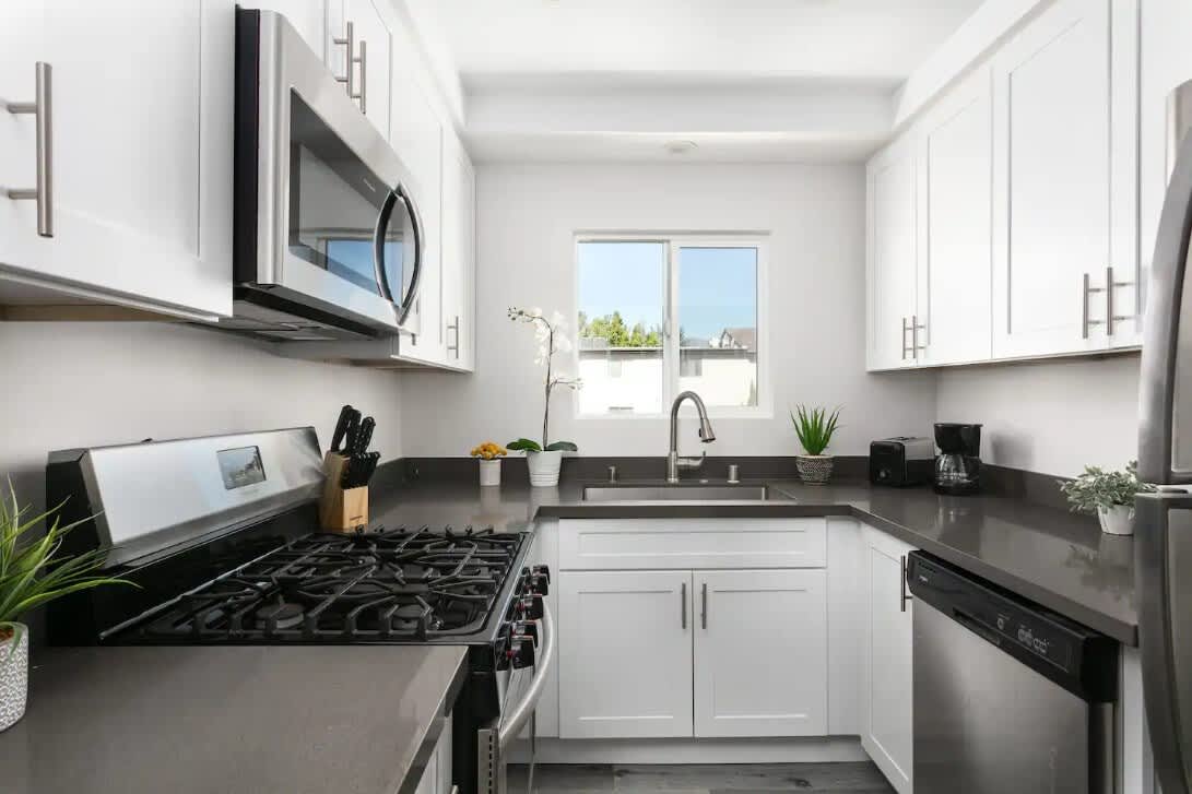 This newly renovated high-tech luxury apartment is a private escape within sight of SoFi Stadium (1 block), The Forum, 10 min from LAX and 20 min from downtown LA. Enjoy this completely renovated modern apartment that includes an open kitchen, quartz countertops, stainless steel appliances, large refrigerator with water filter, dishwasher, gas stove/oven, microwave, disposal, coffee maker, toaster, completely stocked with all the kitchenware to make any meal!