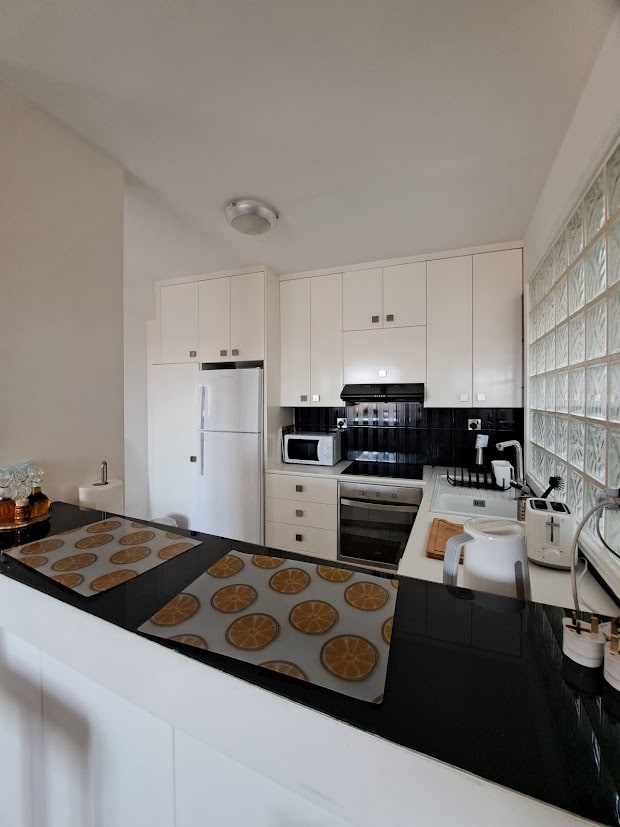 Meine ganze Wohnung besteht aus: 1 Wohnzimmer, 1 Schlafzimmer, 1 Badezimmer, 1 Küche 1 Vorderbalkon, ideal für Paare, Alleinreisende Abenteurer, Geschäftsreisende. Kinder > 12, übernachten kostenlos. Zugang: Aufzug und Treppen, für Gäste mit eingeschränkter Mobilität. Die Wohnung ist 55 m² groß. Internetgeschwindigkeit 150 Mbit/s. Frühstück in preiswerten Cafés in der Nähe und 4 Gehminuten vom Mittelmeer entfernt. Restaurants, Nachtleben und Minimarkt in der Nähe. Check-out: 12:00 Uhr – Check-in: 15:00 Uhr.