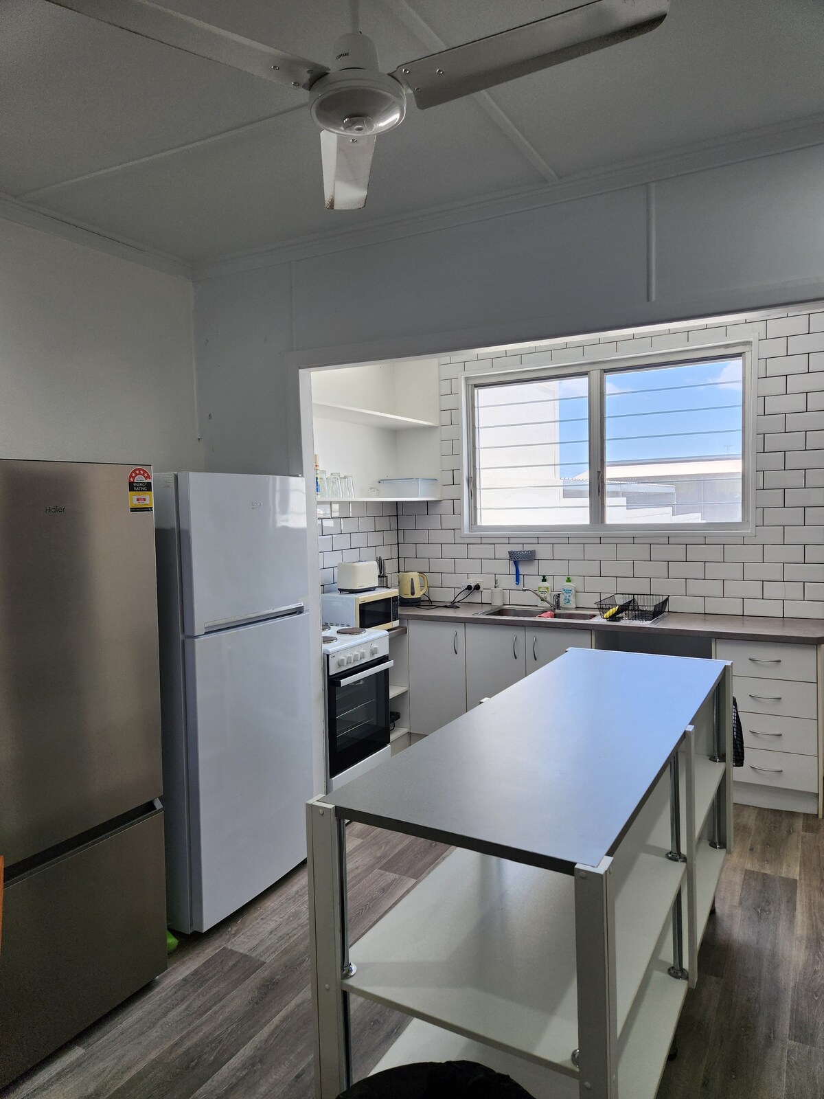 Genieße einen komfortablen Aufenthalt in diesem zentral gelegenen Haus aus der Nachkriegszeit mit zwei Schlafzimmern, einer großen Terrasse und einem Pool. Perfekt für kleine Familien, Paar-Rückzugsorte oder einen Arbeitsurlaub mit einem Arbeitsbereich. Voll klimatisiert, mit Ventilatoren und WLAN ausgestattet. Wir bieten ein ganzes Haus mit einem Queensize- und einem Doppelbett. Es gibt eine saubere Küche, die für dich ausgestattet ist, um eine Mahlzeit zuzubereiten, oder du kannst einfach die Straße hinunter gehen, um einen Kaffee von einem unserer besten Röster in der Stadt, Good Morning Coffee Trader, zu trinken.