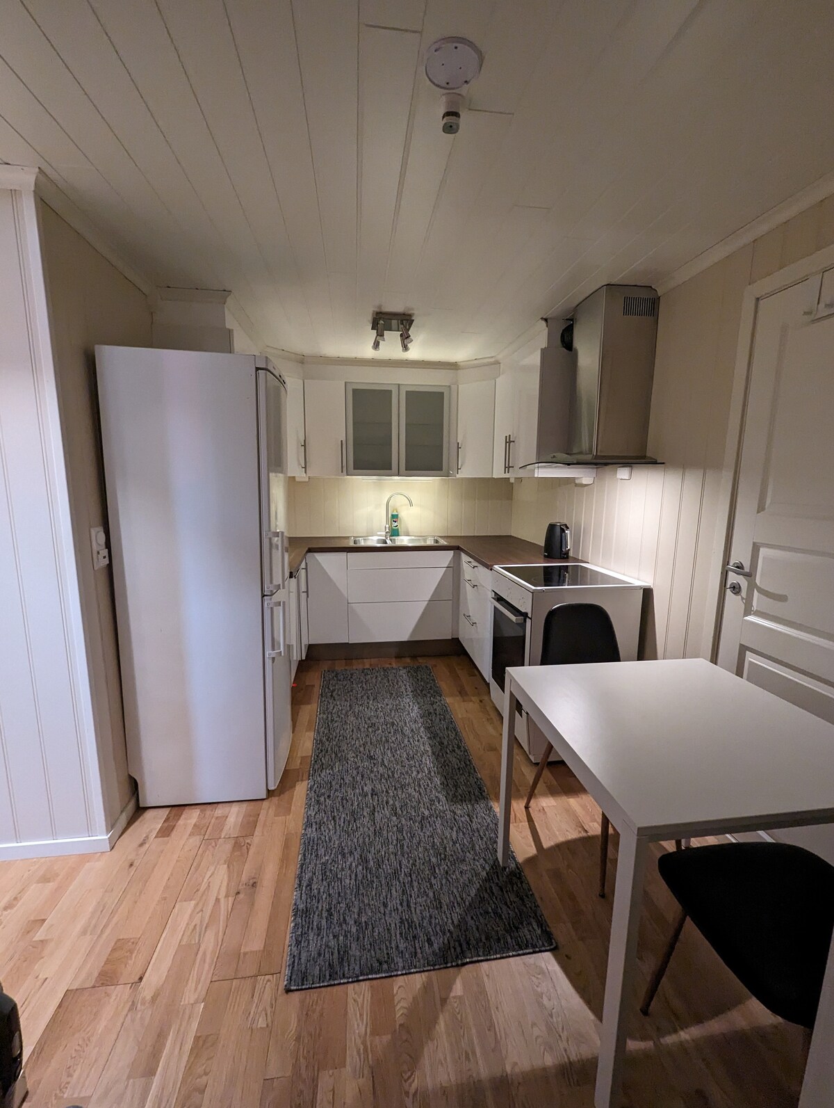 Gemütliche Wohnung im Herzen von Honningsvåg mit Betten und Sauna. Gut ausgestattete Küche mit Kühlschrank, Herd, Airfryer, Mikrowelle und Geschirrspüler. Das Schlafzimmer hat ein komfortables Doppelbett von 160 x 200. Auf dem Sofa-Bett befindest du dich auf deiner eigenen Matratze 140 x 200. Privater Waschraum mit Waschmaschine, Wäschetrockner. Das Wohnzimmer verfügt über TV mit Chromecast, Sofa und Stühlen. Kostenloses WLAN und Parkplätze. Möglichkeit für das Laden von Elektrofahrzeugen nach Absprache mit dem Vermieter.