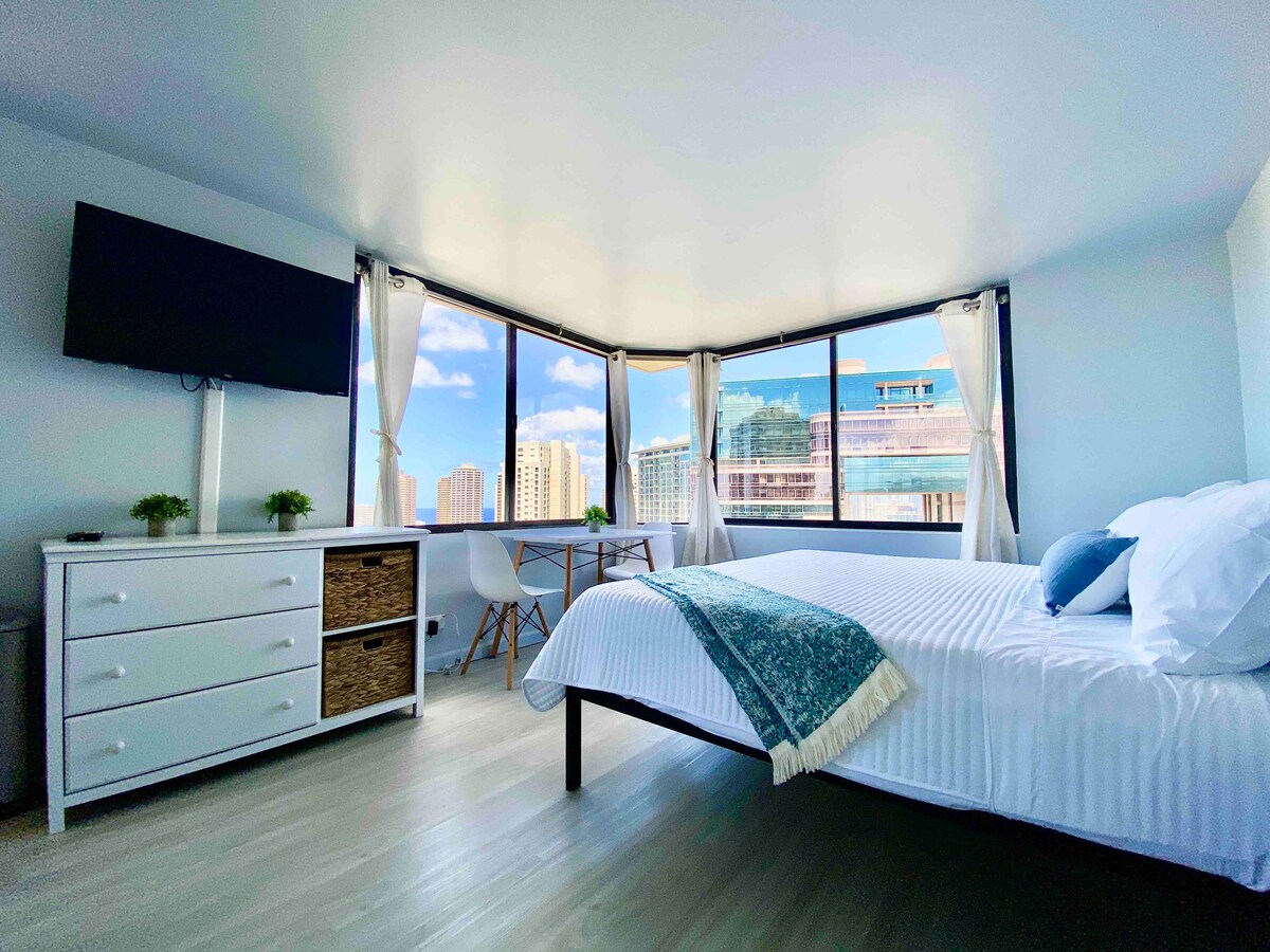 Ocean View at 32 Fl Modern Waikiki Corner Studio