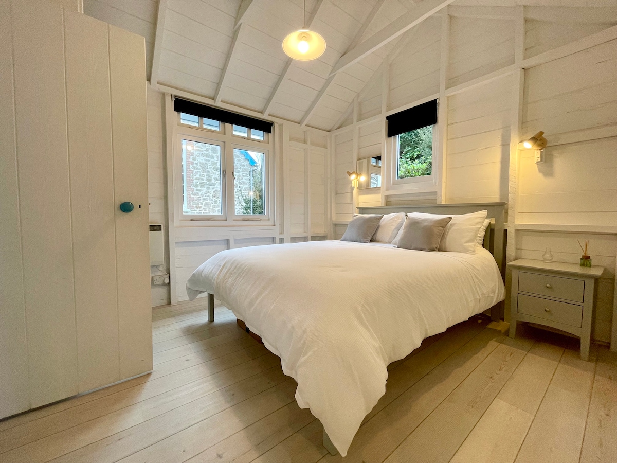 Das Bolt-Hole Bantham ist eine perfekte Unterkunft zu jeder Jahreszeit. Das Bolt-Hole Bantham liegt 1,5 Meilen vom preisgekrönten Bantham Beach entfernt, in einer Gegend von herausragender natürlicher Schönheit. Es bietet Platz für zwei Gäste und bietet einen Aufenthalt in einer einzigartigen Lage mit herrlichem Blick über das Tal. Die Studio-Hütte ist nicht einsehbar, sodass du dich vollständig entspannen und die ruhige Umgebung genießen kannst. Als idealer Winterurlaub gibt es einen Holzofen und einen Heizkörper, um dich in den kälteren Monaten warm zu halten.