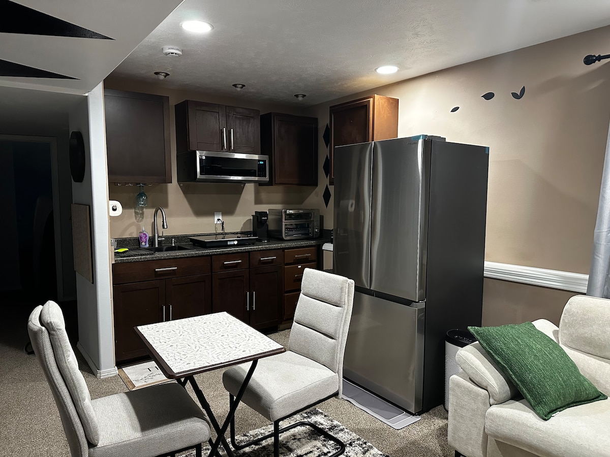Genieße einen privaten Eingang zu diesem gemütlichen Studio im Untergeschoss in der Nähe von Wanderwegen und dem Little Spokane River, nur 5 Minuten von Einkaufsmöglichkeiten und Restaurants entfernt. Im Inneren findest du luxuriöse Vinyl-Dielenböden, eine stilvolle Palettenwand und frische Farbe. Entspanne dich auf dem BESTEN Kingsize-Bett (Gäste schwärmen davon!) oder dem IKEA-Queen-Auszug, perfekt für Kinder oder einen zusätzlichen Gast. Zu den Annehmlichkeiten gehören WLAN, Roku-TV und ein DVD-Player mit Filmen. Reisen Sie mit einem Wohnmobil oder Anhänger? Erweiterte Parkplätze stehen zur Verfügung!