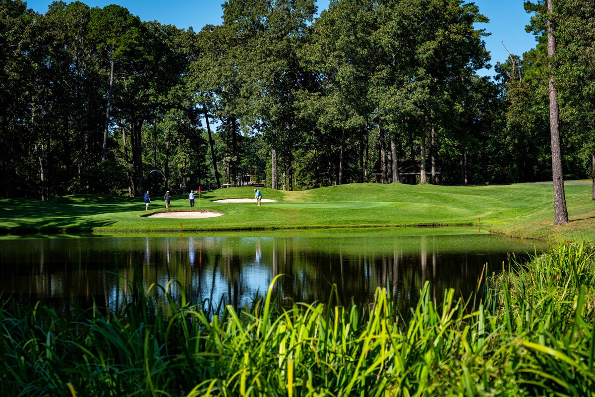 AUSGEZEICHNETE GOLDSTERN-FERIENWOHNUNG! Erfrische dich, regeneriere dich, reflektiere und entspanne dich an unserem abgeschiedenen Reiseziel! In einer geschlossenen Wohnanlage, die sich auf einem privaten 10-Hektar-Wald in den Ouachita-Bergen befindet, befindest du dich in der Nähe von NEUN 18-Loch-Golfplätzen, Wanderwegen, Radwegen, sauberen Seen und vielem mehr. Golfer, nutzt eure Troon-Karten oder euren Gaststatus. Voll ausgestattete Küche mit Gasgrill und SPA auf großer Terrasse, perfekt für Morgenkaffee und Abendcocktails. Es dreht sich alles um die Lebensqualität.