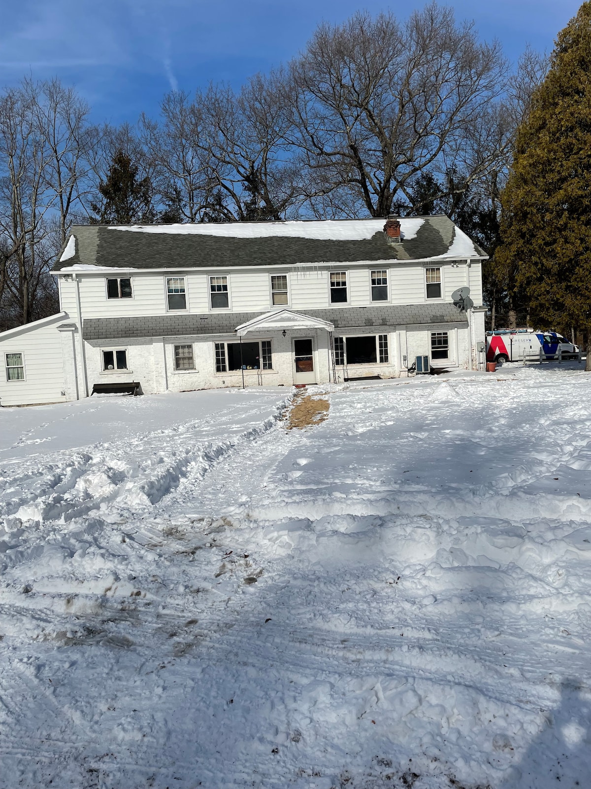 🛏️2 Kingsize-Betten, 2 Einzelbetten, Grill, Kamin, Feuerstelle, 1550 Quadratfuß gesamtes Haus 🅿️🛜 Versteckt am Ende einer ruhigen Straße, auf mehr als 3 Hektar üppigem bewaldeten Land gelegen, ist unser Haus die perfekte Mischung aus Abgeschiedenheit und Bequemlichkeit. Mit einem Wald, da dein Garten und RT34 eine Minute entfernt sind, kannst du deinen Wunsch nach Natur und Abenteuer ganz einfach mit dem Bedürfnis nach Reisen und Pendeln ausgleichen, eine kurze Wanderung in einen Wald (Wanderwege nur wenige Minuten entfernt) unternehmen und/oder dich unter den Sternen um eine Feuerstelle entspannen.