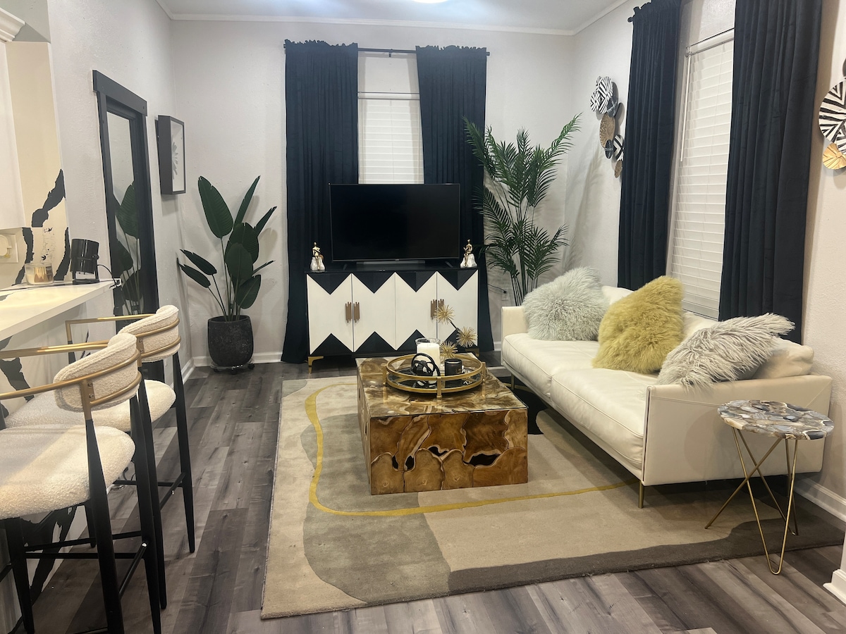 The Modern Chic is a curated luxury unit offered by The High Rise Collective in Houston. This stunning 2 bedroom 2 bath high rise apartment offers a professionally designed interior with luxurious amenities such as an infinity edge pool, spacious gym, and much more. Located in the heart of the Texas Medical Center, this unit offers direct access to the Buffalo Bayou running trails. There is also easy access to Rice University, The Houston Zoo, Hermann Park, Museum District, and NRG Stadium.