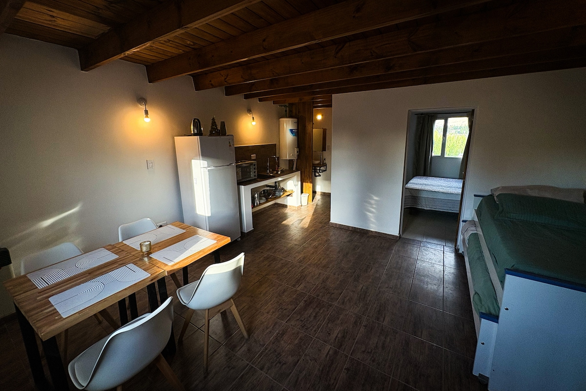 Gemütliches Haus in El Calafate, bis zu vier Personen. Schlafzimmer mit Option auf Doppel- oder Zweibettzimmer und Schlafsofa im Wohnbereich. Ausgestattet mit allen Annehmlichkeiten. Das Hotel liegt im zentralen Bereich der Stadt, 3 Blocks vom Naturschutzgebiet Laguna Nimez und 1 Kilometer vom Lago Argentino entfernt. Einfacher Zugang zum El Chaltén y Torres del Paine. Wir wünschen dir einen schönen Aufenthalt, während du alles entdeckst, was Patagonia zu bieten hat. Du kannst uns jederzeit kontaktieren, wenn du weitere Informationen benötigst!