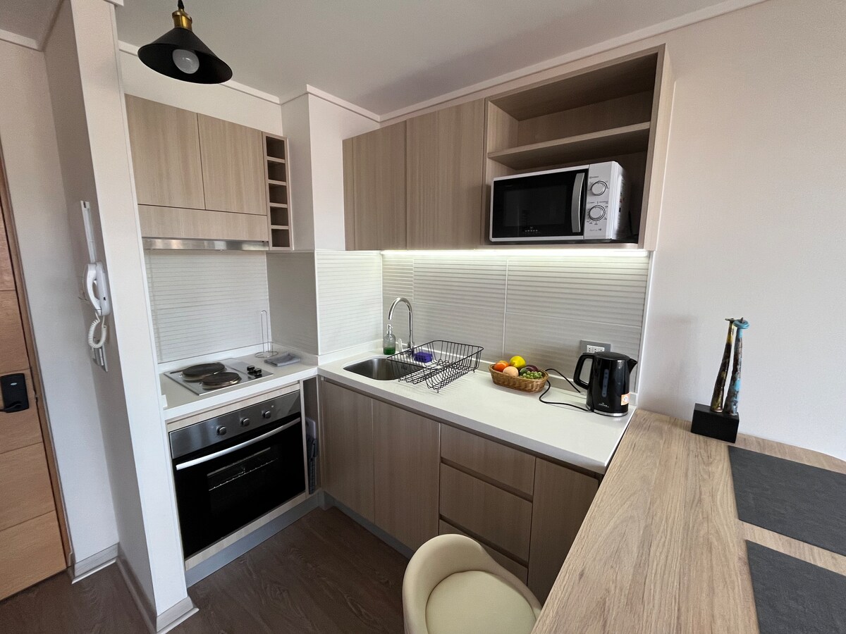 Disfruta de este departamento nuevo, full equipado para dos personas, cerradura inteligente, céntrico y muy cómodo, ideal para alojarse en Concepción. A pasos de la Universidad de Concepción, Hospital Regional, Tribunales, etc El edificio cuenta con Seguridad conserjería 24/7, Circuito Cerrado de Tv, Estacionamiento privado Subterráneo y Lavandería del edificio