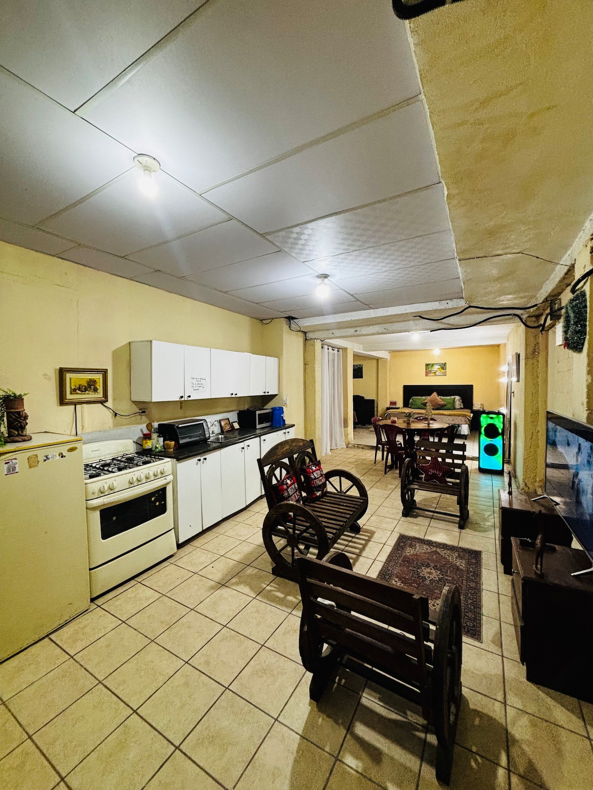 Hospedaje económico en HUEHUETENANGO 📍 ARIANAS PLACE 1: -Céntrico -Capacidad 6 a 9 personas -Sala completa -Comedor completo -3 camas y una extra -Bocina Bluetooth -Wi-fi - 2 Tv Smart -Baño y Ducha con agua caliente -Estufa con gas, refrigerador, microondas y utensilios que deben solicitar. -Pila -Incluye servicio de limpieza -Contamos con parqueo 🚘 -Contamos con cámaras de seguridad fuera de la propieda!