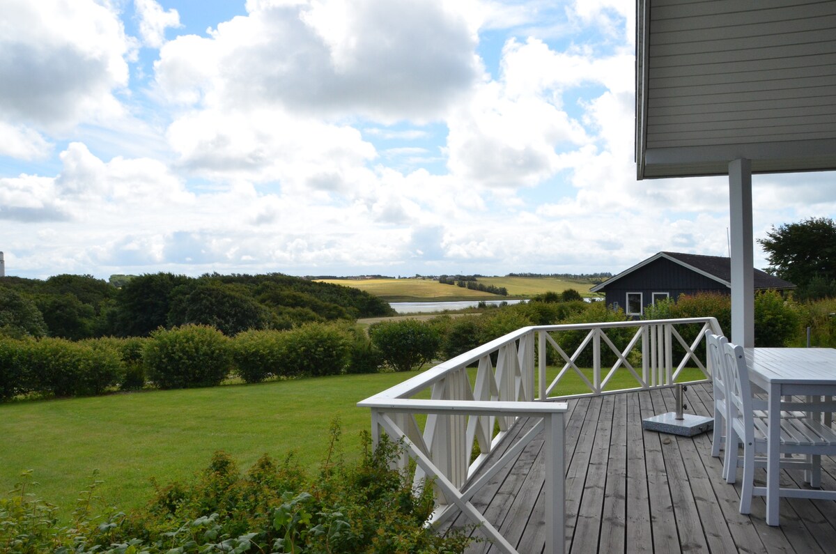 Das Haus ist neu renoviert, verfügt über eine eigene Terrasse und bietet einen wunderschönen Blick auf eine ganz besondere Landschaft. In sternklaren Nächten können Sie vom Bett aus den Sternenhimmel durch die Atelierfenster im Dach erleben. Tagsüber können Sie das besondere Licht genießen, das die Lage in der Nähe von Meer und Fjord über die Landschaft wirft. Auf dem Hügel hinter dem Haus gibt es die schönste Aussicht auf den Limfjord und das Land dahinter. Es ist nicht weit zum Fjord, wo es gute Badebedingungen gibt und die Fahrt dorthin ist wirklich schön.