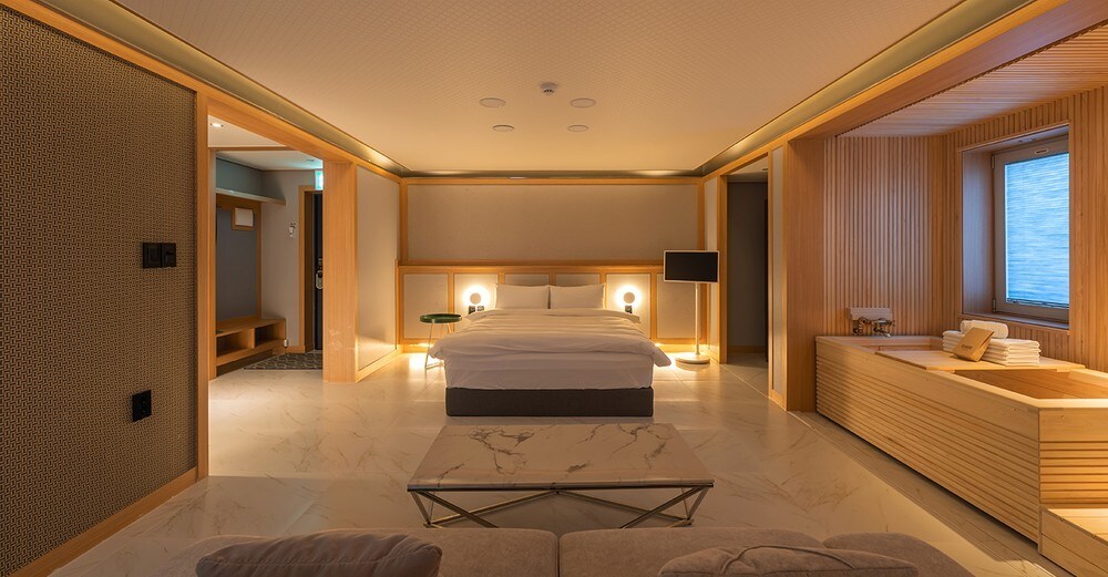 고급스럽고 세련된 인테리어의 경주 숙소 본관 디럭스히노끼욕조 305호