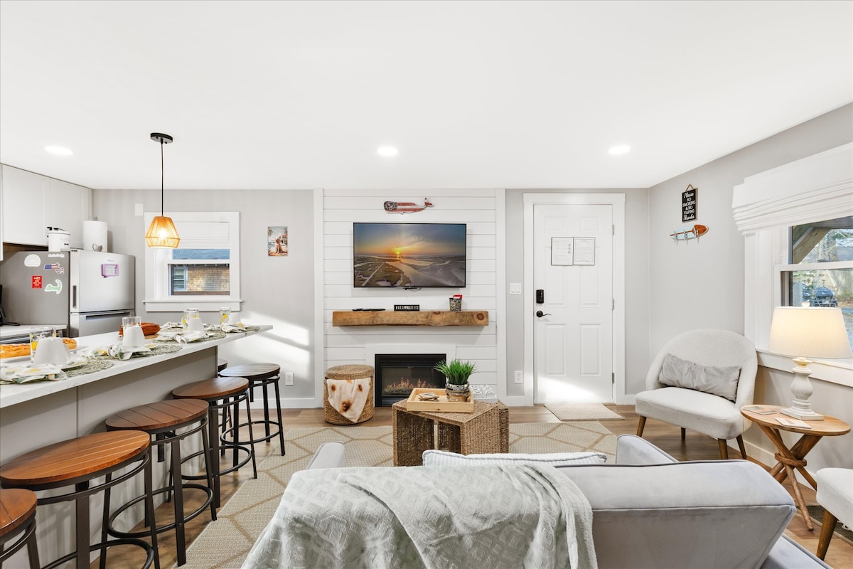 Ein kürzlich anwesender Gast beschrieb dieses Haus als „ein Juwel“ – und wir stimmen zu! Oberlichter, sichtbare Balken und schöne Holzböden begrüßen dich, wenn du dieses charmante Refugium in Cape Cod betrittst. Bequeme Sitzgelegenheiten, Smart-TVs und ein langer Esstisch bieten den perfekten Rahmen, um neue Erinnerungen mit Freunden und Familie zu schaffen. Beliebte Strände, Main Street-Geschäfte und Restaurants sind fußläufig erreichbar, während die nahe gelegene Fähre einen bequemen Ausgangspunkt für Abenteuer auf Martha's Vineyard und Nantucket bietet.