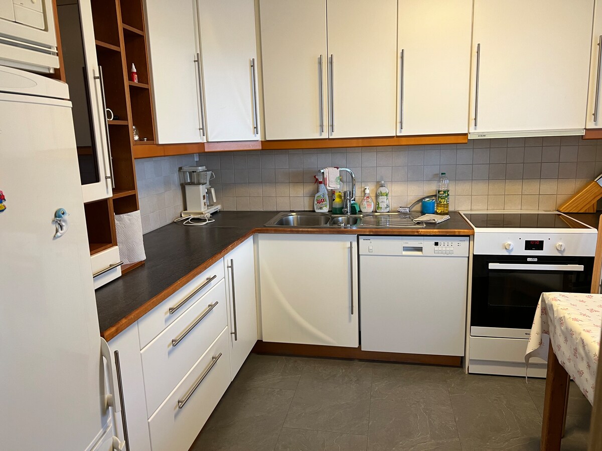 Geräumige Wohnung mit 2 Schlafzimmern, 5 Betten. Große Küche und Wohnzimmer. Esstisch mit guter Aussicht auf den Sognefjord. Guter Parkplatz beim Haus. Die Wohnung befindet sich 3 Minuten (mit dem Auto) von der Fähre entfernt, es ist kostenlos, mit dem Auto auf der Fähre zu reisen. Hier kannst du den Sognefjord überqueren oder in die benachbarte Gemeinde Solund reisen. 20 Autominuten vom Stadtzentrum und vom Gulatingsparken entfernt. Gute Wanderwege auf dem Berg und Möglichkeiten, im Meer oder im Wasser zu schwimmen.
