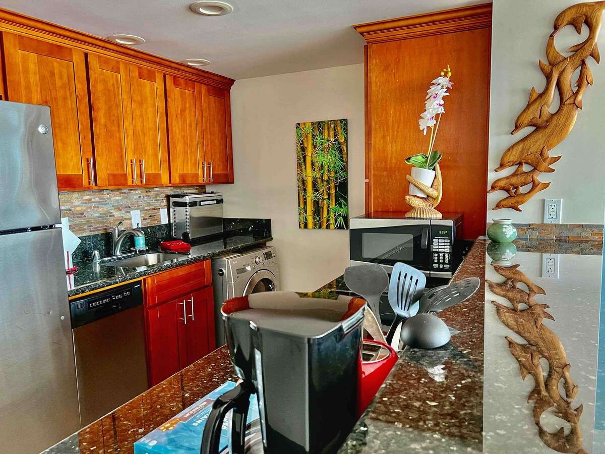 Enjoy the panoramic ocean view directly from the living room. This wonderful ground floor unit offers privacy and tranquility with expansive ocean views, where you can enjoy seasonal whale watching, paddle boarding, surfing, snorkeling as well as many other activities just outside your door. The unit is also adjacent to one of the longest beaches on Maui, Sugar Beach. And just down the road you will find great shopping, restaurants, nightlife and the Maui Ocean Center.