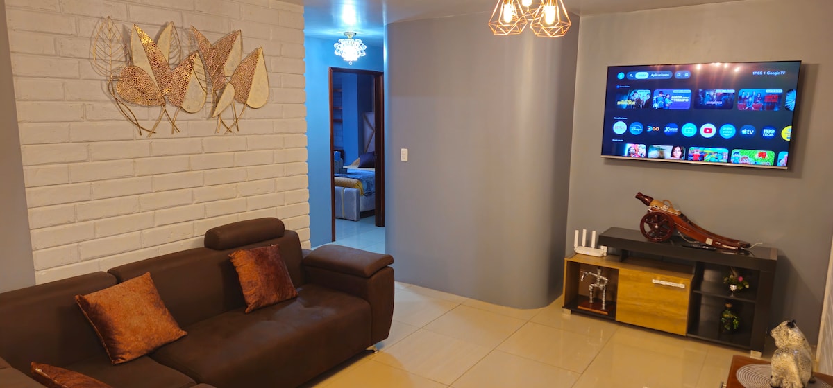 Du wirst kein Zuhause wie unseres in Ibarra finden! Dies ist ein schönes Haus mit einem modernen, minimalistischen Design in einer ruhigen Wohngegend, zwei Blocks vom Haupteinkaufszentrum, Finanzinstituten und Restaurants entfernt. Es verfügt über drei große Schlafzimmer, jeweils mit einem eigenen Bad und Kingsize- oder Queensize-Betten, ein TV-Zimmer, eine voll ausgestattete moderne Küche, einen Garten, Terrassen, sichere Parkplätze und WLAN.