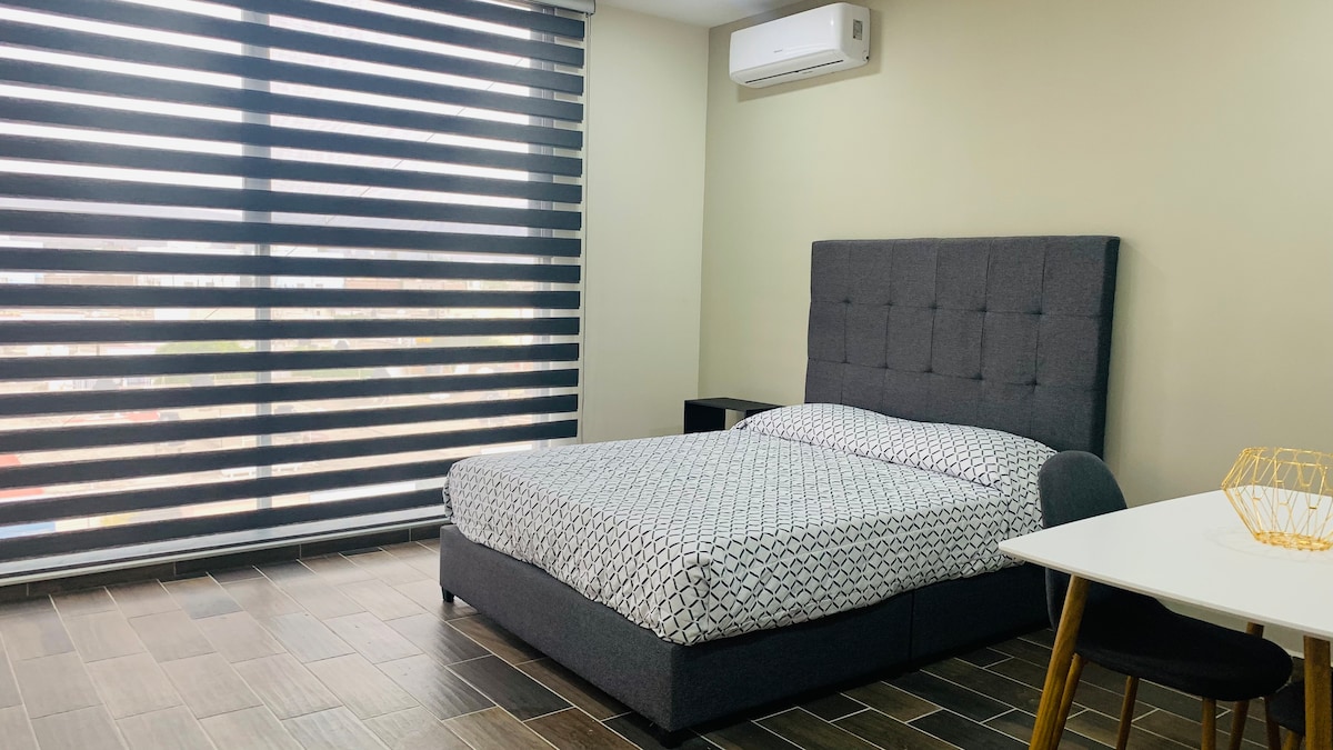 Genieße die Moderne dieses Lofts an einem tollen Ort, um sich in der Stadt fortzubewegen. Das Hotel liegt in einer sehr zentralen Gegend und in einer sehr ruhigen Gegend, es wird perfekt zum Ausruhen sein. Es verfügt über einen eigenen Parkplatz und schöne Grünflächen. Perfekt für den Besuch oder die Arbeit. Das Loft verfügt über Klimaanlage und Verdunkelungsvorhänge, um sich gut auszuruhen!