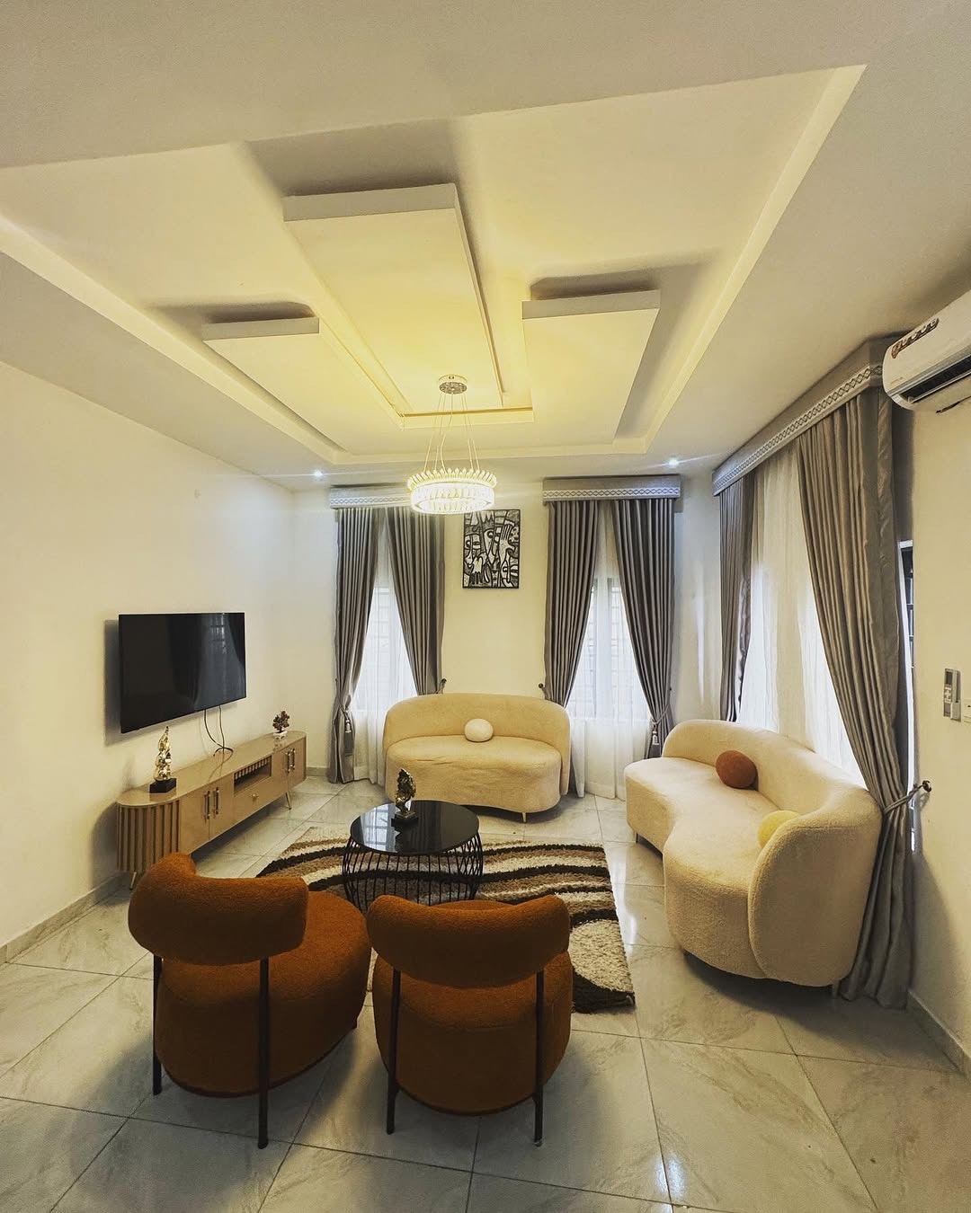 Experience refined comfort in this elegant, family-friendly 2-bedroom apartment set within one of Lekki’s greenest and most secure estates. Enjoy seamless connectivity—10 minutes to Shoprite, Blenco, Yakoyo, and the new Coastal Road, with LBS just 15 minutes away. Guests benefit from gated, pre-approved access, serene surroundings, and on-estate conveniences including a mini supermarket and pharmacy.