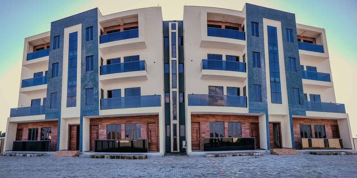 Lehne dich zurück und entspanne dich in diesem exquisiten Zuhause. Ihr zweites Zuhause erwartet Sie. Luxuriöse Kingsize-Betten, die rund um die Uhr mit Strom und Sicherheit ausgestattet sind. Diese Wohnung liegt zentral im Herzen des neuen wirtschaftlichen Zentrums Ibeju Lekki. 9 Minuten zum Lakowe Lakes Estate Golf Course. Es liegt in der Nähe von Dangote Raffinerie, Lekki Free Trade Zone, Supermärkten, Museen, Nachtleben und Stränden. Kostenloses WLAN und Parkplätze.