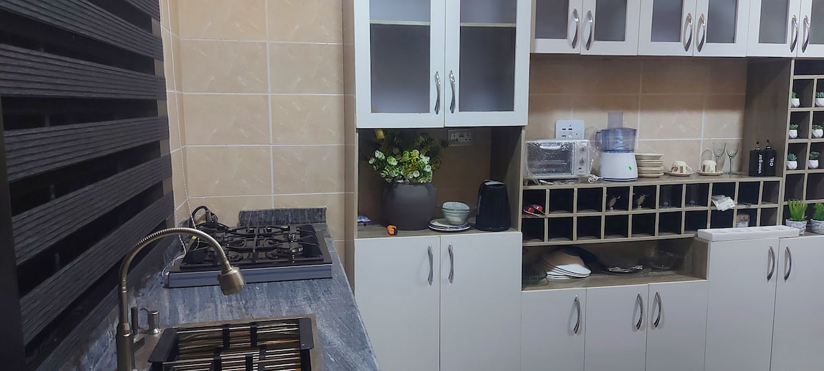 Sidemiwa Apartment - Luxuriöser Aufenthalt, privat gesichert, 5 Minuten vom internationalen Flughafen MMA entfernt, befindet sich in Lagos. Entspanne dich in diesem ruhigen und geschmackvoll gestalteten Rückzugsort. Die Unterkunft verbindet Komfort mit modernem Stil und bietet gemütliche Möbel, Ambientebeleuchtung und eine beruhigende Atmosphäre. Ideal sowohl für Arbeit als auch für Entspannung, ist es eine einladende Oase, in der du dich ausruhen, neue Energie tanken und dich wie zu Hause fühlen kannst. 24/7 Strom, Solarenergie, schnelles WLAN-Internet.