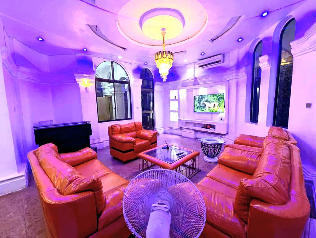 Der Solar-Wechselrichter garantiert 24 Stunden lang Strom, der speziell für Airbnb gebaut wurde. Zimmer mit Klimaanlage, Wohnzimmer mit Ventilator, 44 Zoll LED-Fernseher, DSTV, gebrauchsfertige Küche, WC und Bad, Warmwasser, 33 KVA-GENERATOR und vieles mehr. Klimaanlage nur auf öffentlichem Strom verfügbar. Generator läuft nach Ermessen des Gastgebers.