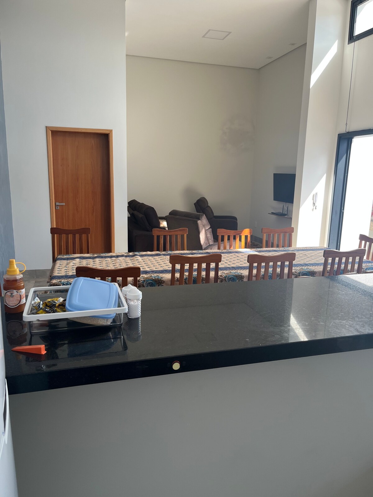 Casa aconchegante com uma suíte, 1 quarto solteiro, 1 banheiro social, sala de estar com lavabo, cozinha equipada, lavanderia e garagem para dois carros de pequeno porte. Não é disponibilizada roupa de cama ou de banho. Não aceita animal de estimação. Não aceitamos reserva para terceiros (colaboradores)